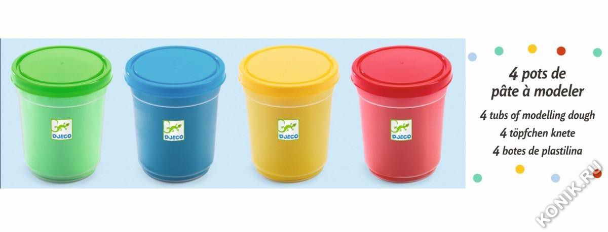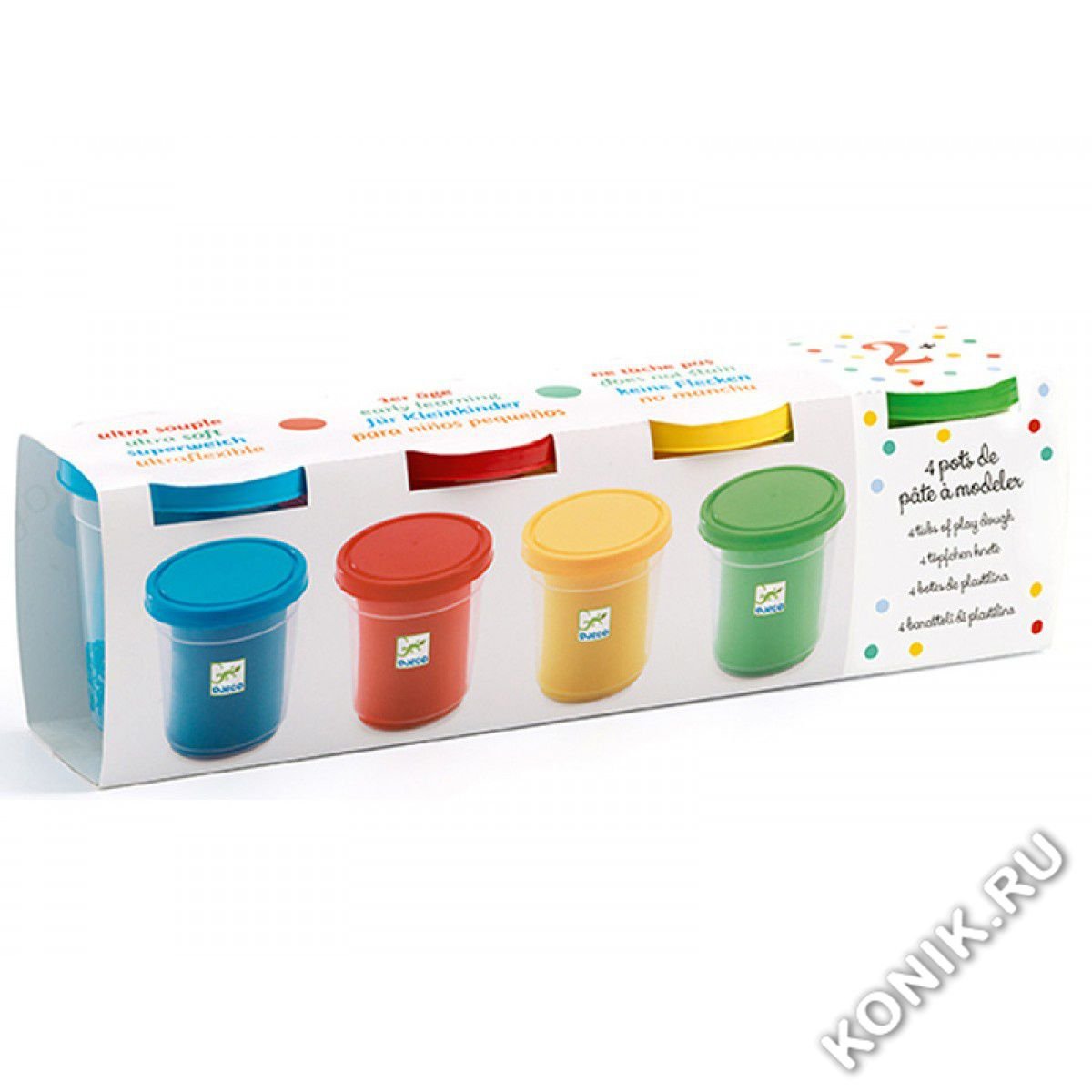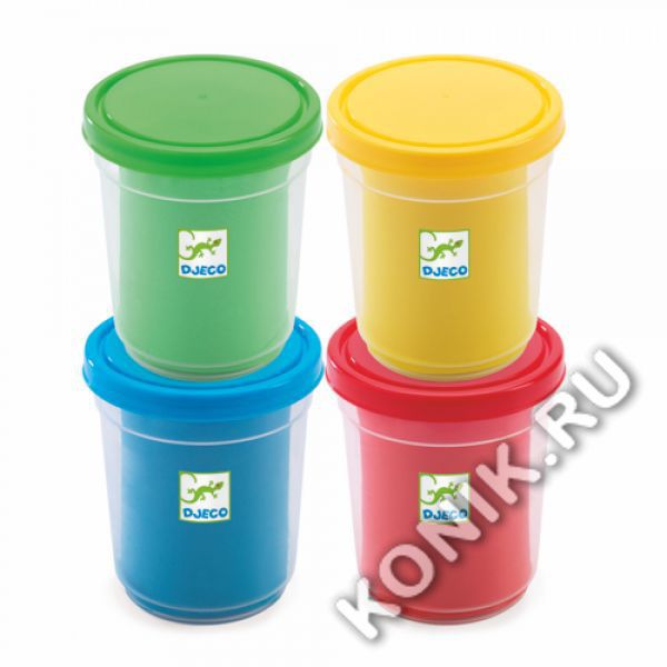 Комплектация: 4 баночки с мягким пластилином зеленого, желтого, красного и синего цвета.