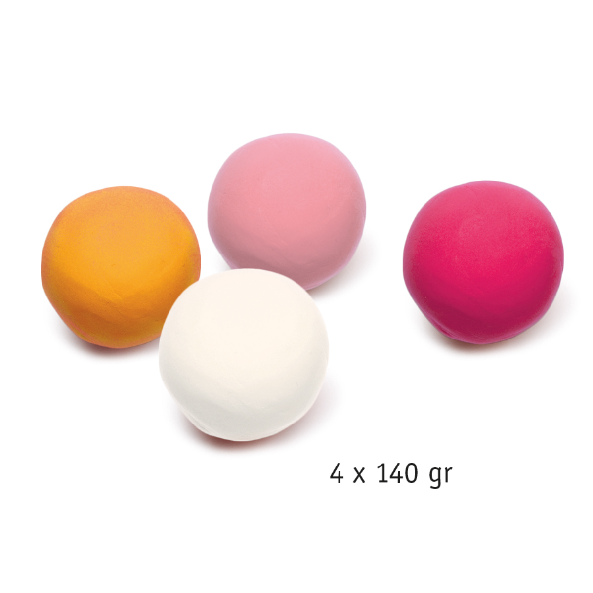Комплектация: 4 баночки с мягким пластилином пастельных цветов: оранжевый, фуксия, розовый и белый.