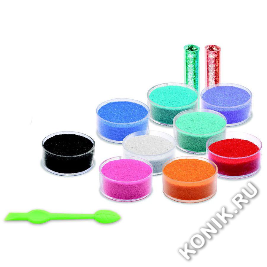 Яркий песок и забавные картинки надолго увлечет малыша и позволит проявить творческие способности. Его задача будет стоять в технике пересыпания песка на клейкие части картинок. Впоследствии можно украсить детскую комнату ребёнка получившемся шедевром, который будет радовать всю семью.