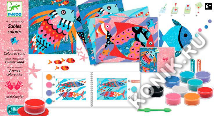 Набор для детского творчества «Радужные рыбки» от французского производителя Djeco (Джеко) позволит каждому ребёнку создать собственную художественную картину своими руками.