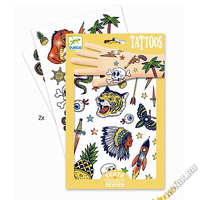 Все помнят, как в детстве искали вкладыши от жвачек, которые перебиваются. Многие дети любят клеить наклейки на себя или рисовать на себе какие-то фигурки, в какой-то степени подражая таким образом взрослым. Наборы наклеек Djeco понравятся и мальчикам и девочкам, так как магазин «Коник» предлагает огромный выбор и самые разнообразные картинки, которыми можно легко украсить себя. Мальчикам особенно понравятся тату Djeco с изображением динозавров, так как многие юные исследователи интересуются этими доисторическими животными. Для девочек есть разные наборы с милыми животными, принцессами и растениями.