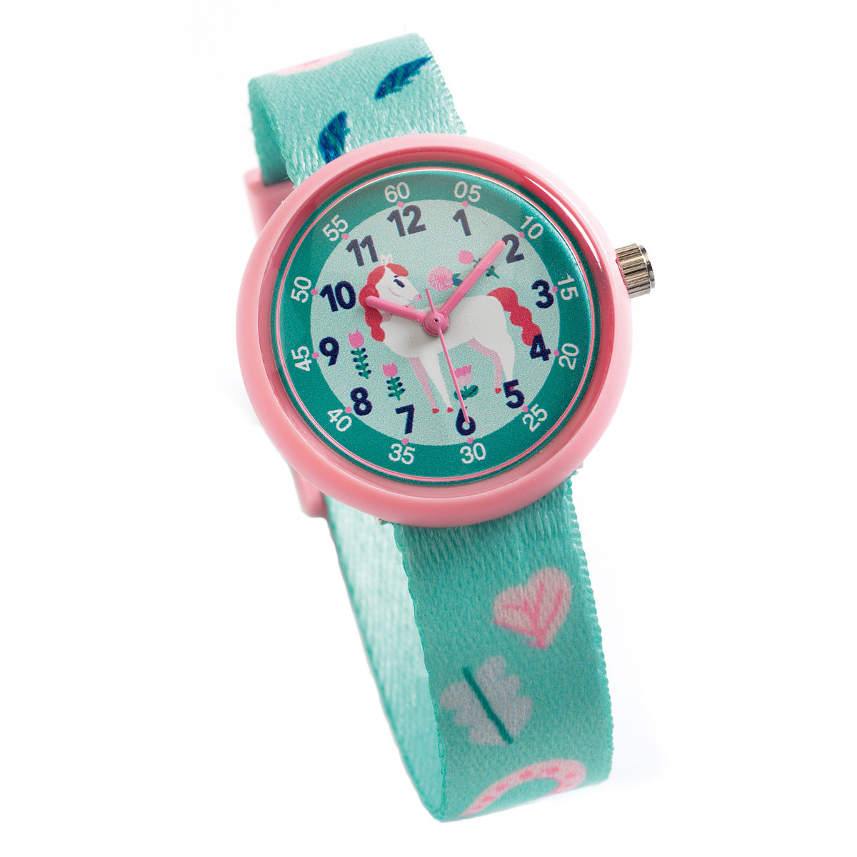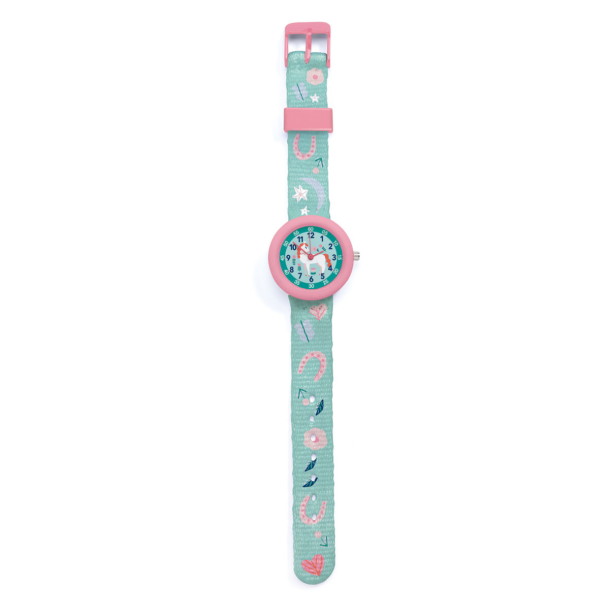 Элегантные кварцевые часы, красиво иллюстрированные лошадиной тематикой, чтобы научиться определять время.