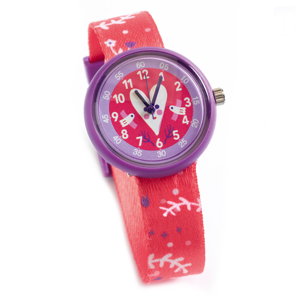 Элегантные кварцевые часы, красиво иллюстрированные сердечком, чтобы научиться определять время.