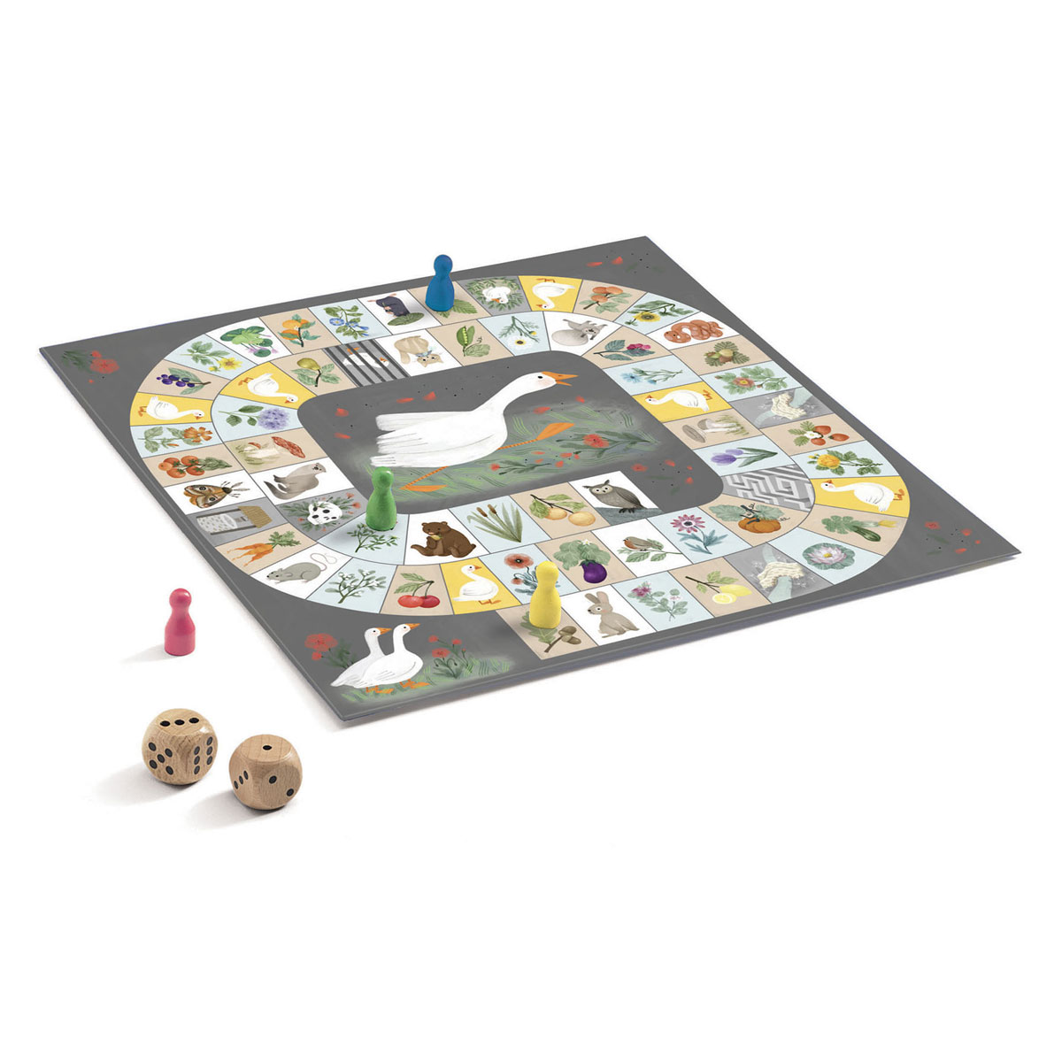 «Гусёк» от французского производителя Djeco (Джеко) — классическая бродилка, в которой можно победить, добравшись раньше всех игроков до клетки «63». В зависимости от того, где остановился игрок, происходят разные действия. Например, если фишка закончила ход на клетке «гусёк» — тогда игрок может походить ещё раз. Или, если фишка остановилась на одной клетке с фишкой оппонента, то он должен отойти назад. А если вы попали в колодец — придётся пропустить ход. В общем, стоит как можно быстрее продвигаться вперёд, но при этом не нарываться на ловушки. Минимум правил — максимум азарта.