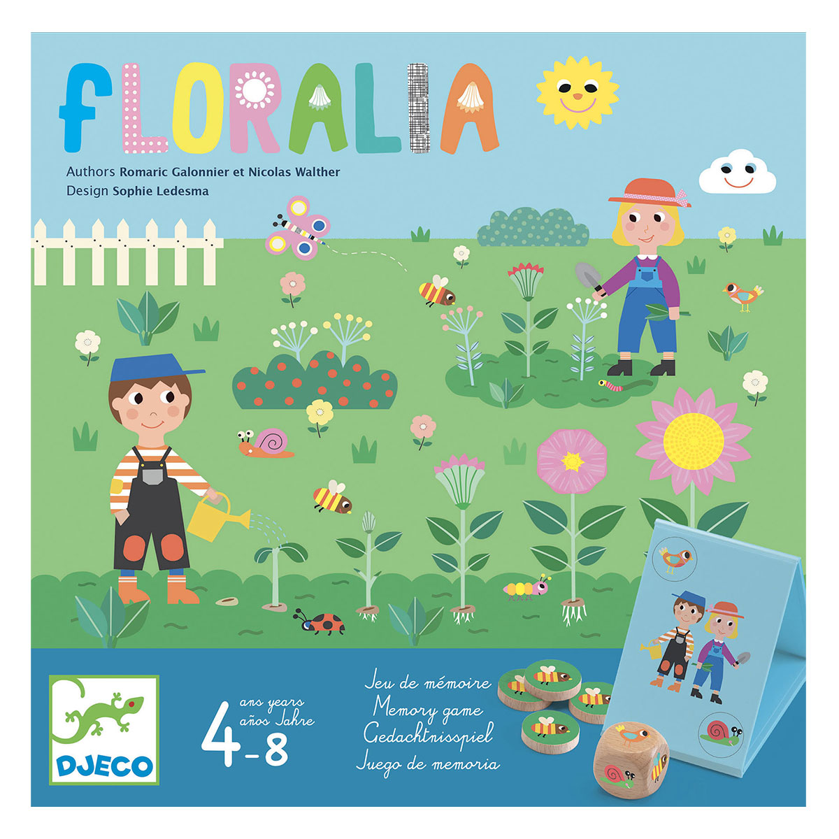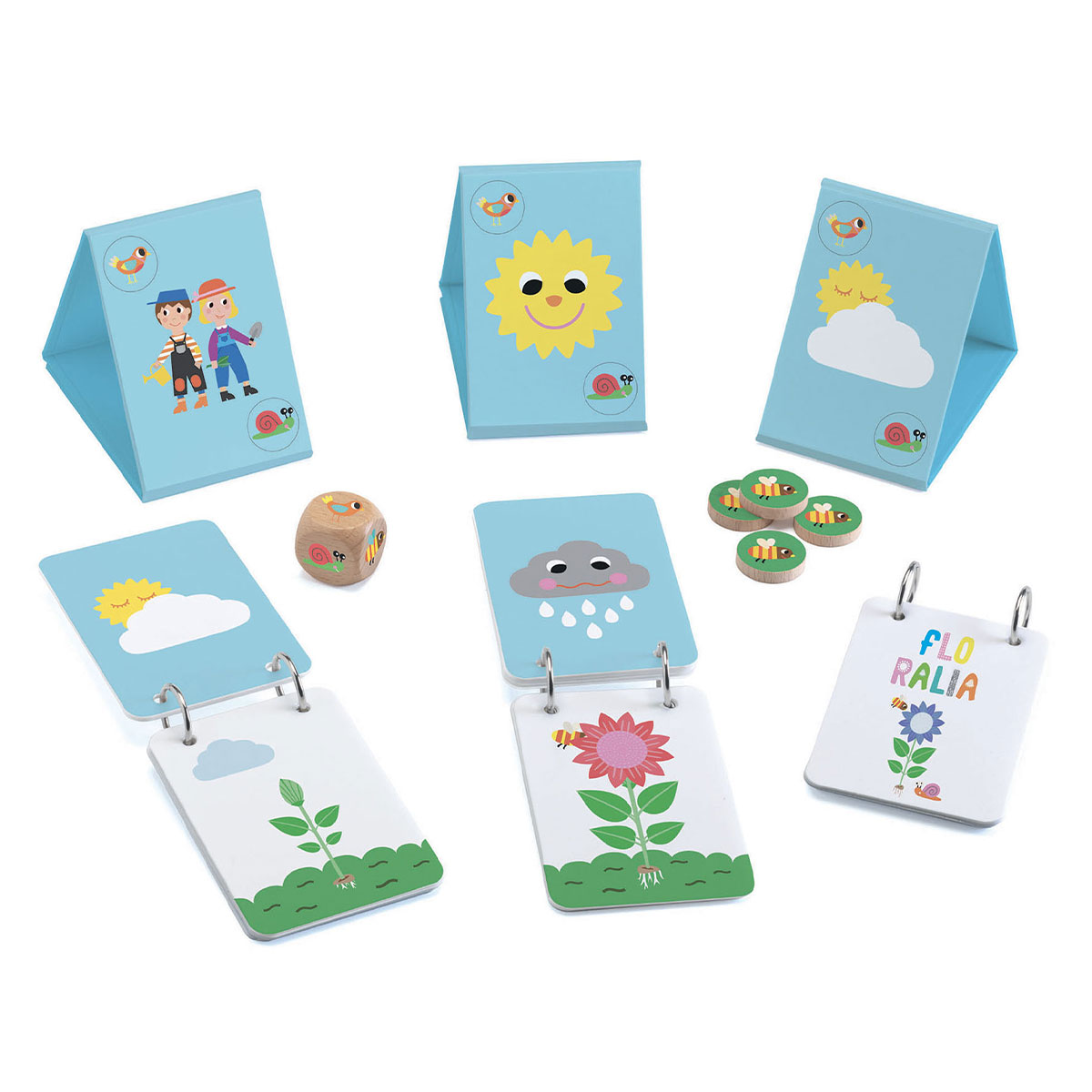 Каждый садовник, с помощью игрового кубика, должен переворачивать пирамиды в нужную сторону и получать погоду, которая поможет ему вырастить прекрасный цветок из семечка.