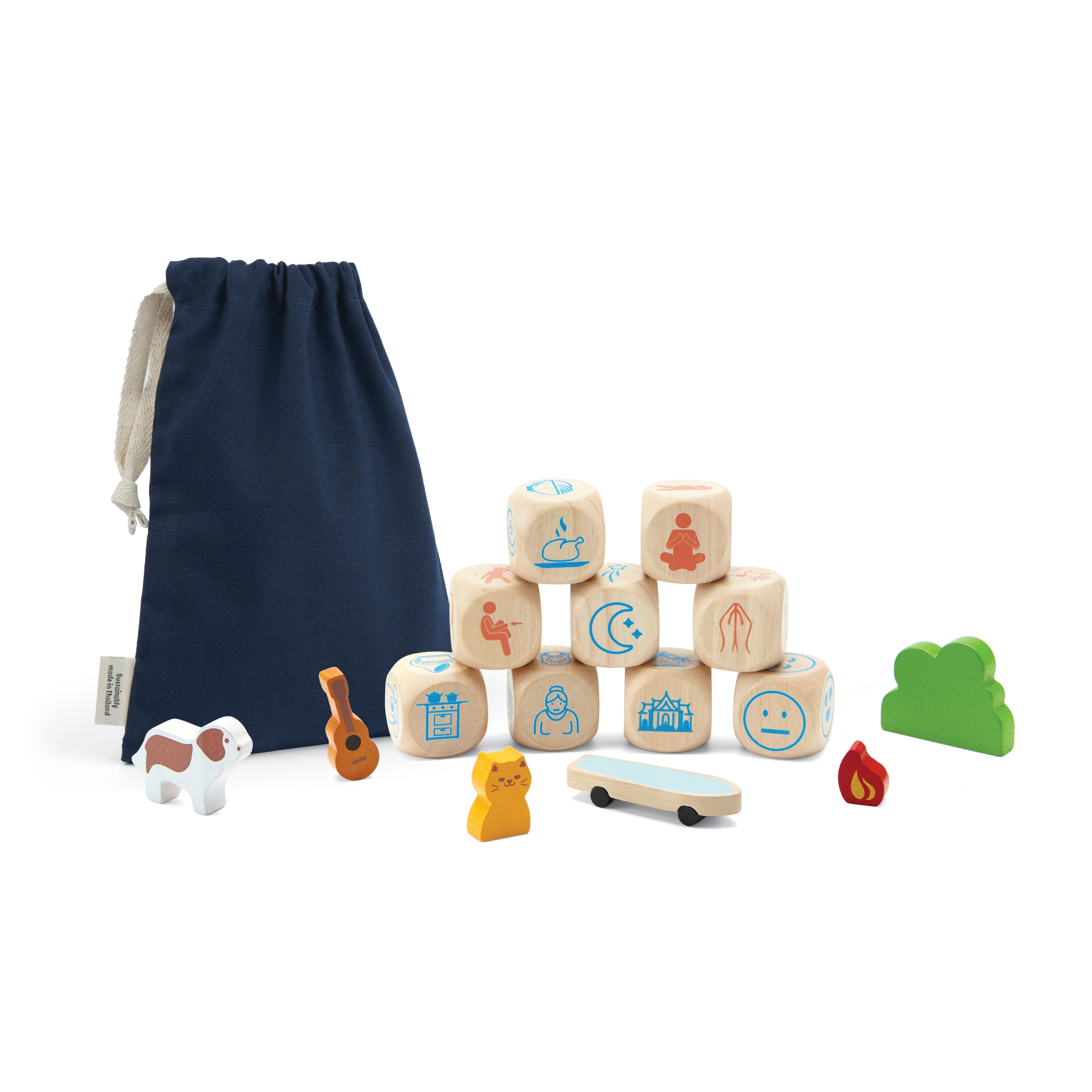 «Кубик-рассказчик» PlanToys – это увлекательная настольная игра для всей семьи. Участники по очереди бросают кубик и получают задание изобразить сценку, соответствующую картинке на грани кубика. Игра развивает многозадачность и концентрацию, а также воображение.