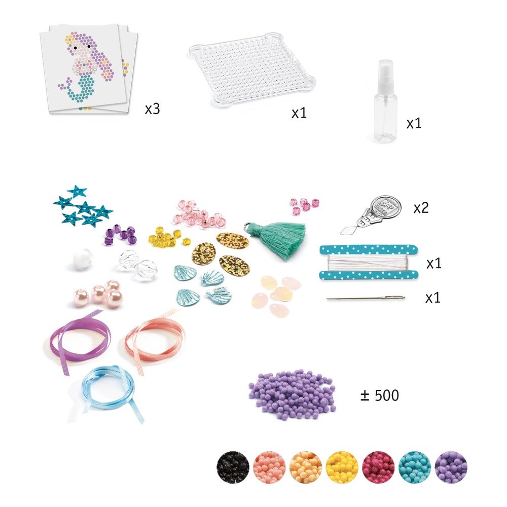 Набор для творчества «Морские украшения» от французского производителя игрушек Djeco (Джеко), благодаря которому ребёнок с легкостью и большим интересом сможет создать необычные подвески и украшения своими руками. Ему необходимо выложить из бусин морских обитателей, затем сбрызнуть их водой, бусины склеятся и подвеска готова! Такое времяпрепровождение помогает развить воображение, усидчивость, навыки мелкой моторики и эстетический вкус.