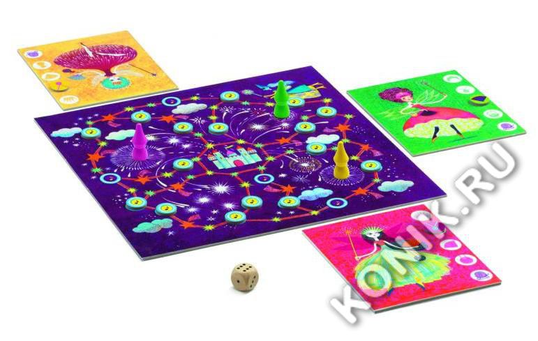Процесс игры Игру начинает самая младшая фея, а затем ход переходит по часовой стрелке. Она бросает кубик и выполняет ход фишкой в любом направлении. Игру продается в яркой подарочной коробке.