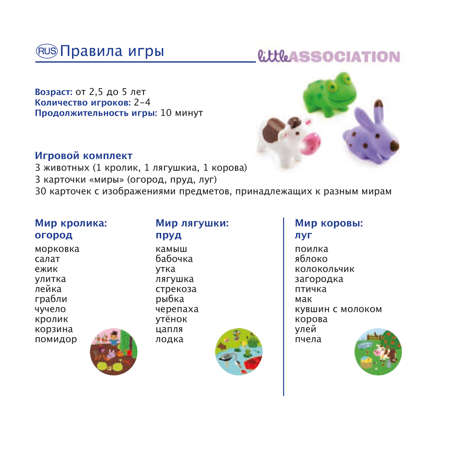 Кролик живет на грядке с овощами, корова - на лугу, а лягушка - в пруду. К какой среде обитания относится каждый предмет? Каждый ребенок должен взять то, что он знает, и применить логику, чтобы найти правильные совпадения.