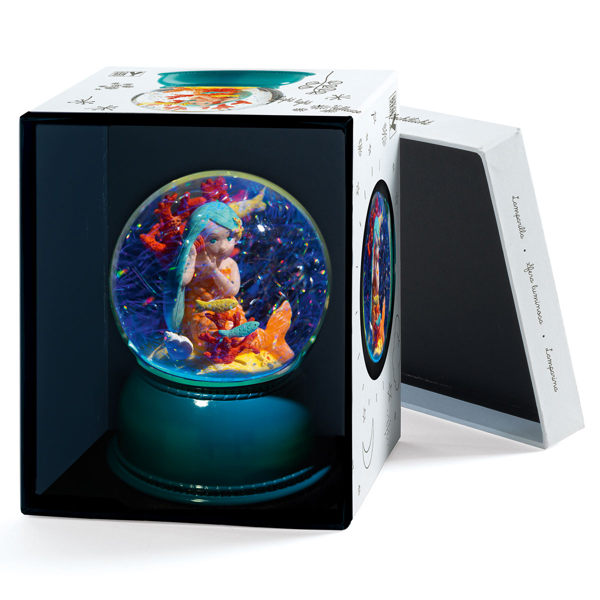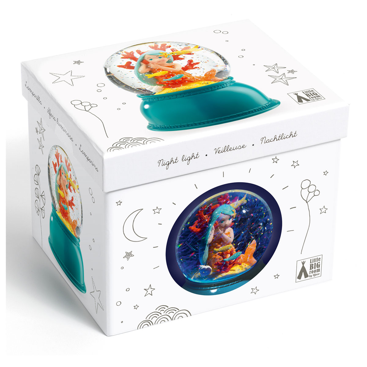 Ночник выполнен в виде шара с блестками, внутри которого спряталась очаровательная русалочка. Включив ночник, малышка увидит нежный разноцветный свет, который преобразит комнату. Плавные переходы от одного цвета к другому дарят умиротворение и помогут девочке без страха заснуть в темноте, позволив ей погрузиться в сладкий сон.