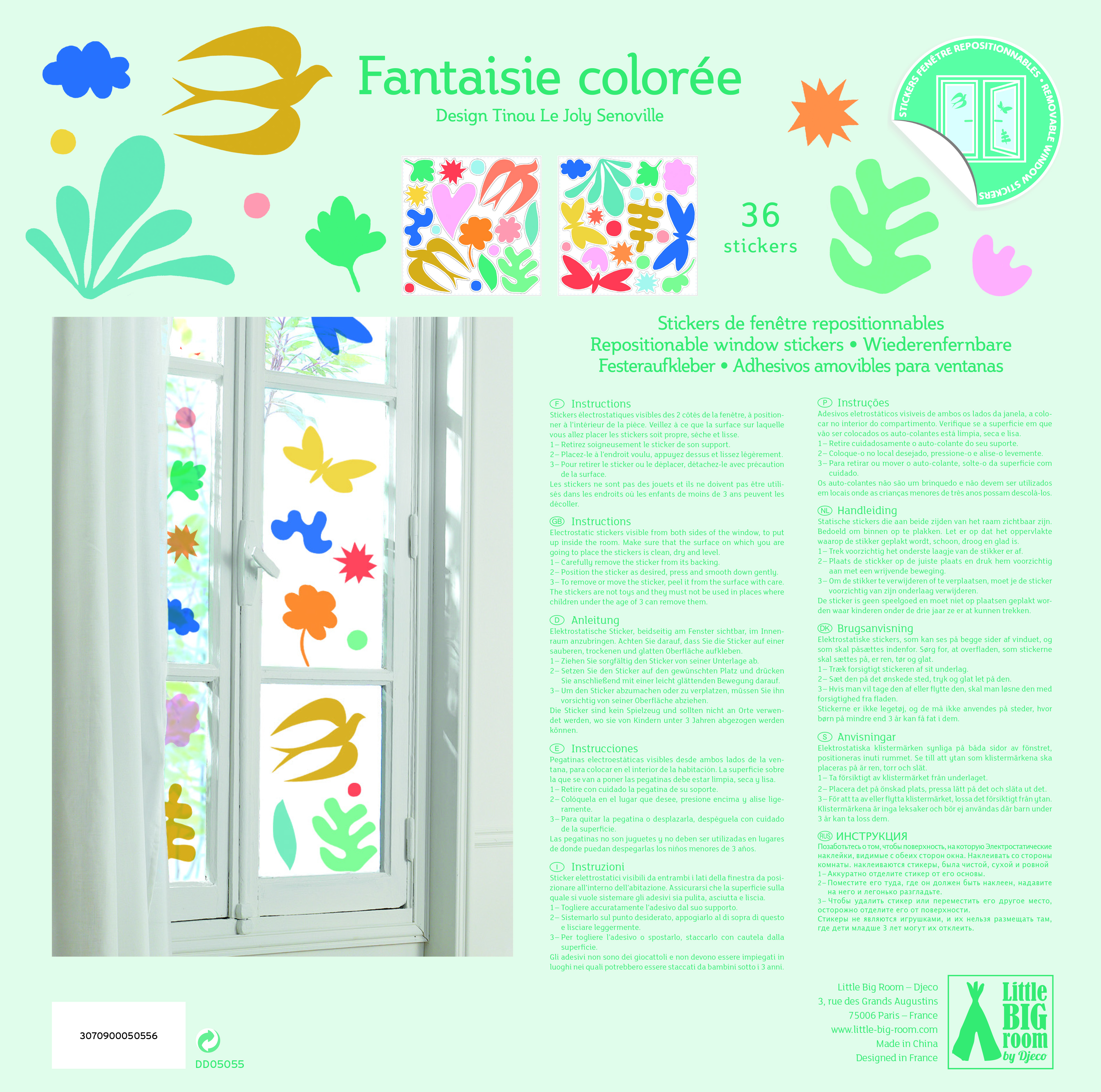 Оконные наклейки «Фантазия» от французского бренда Djeco - идеальное украшение для детской комнаты маленькой принцессы, которое создаст позитивное и яркое настроение. Благодаря гибкому материалу, наклейки легко снимаются с окон и могут быть легко перенесены в другое место, не оставляя следов.
