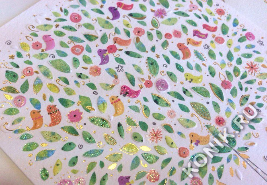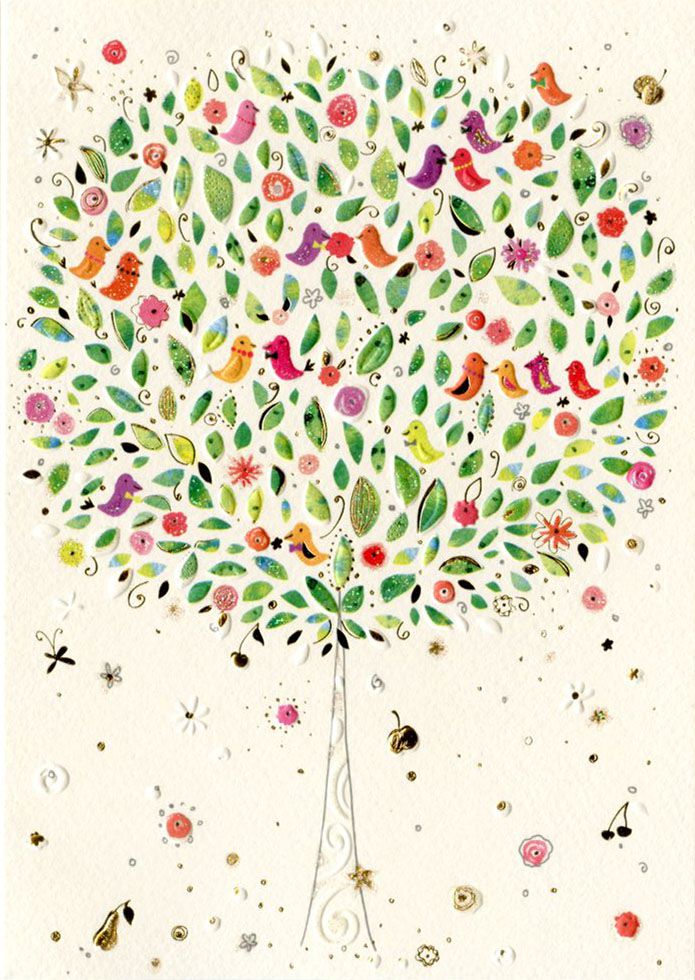 Открытка. Птицы на дереве