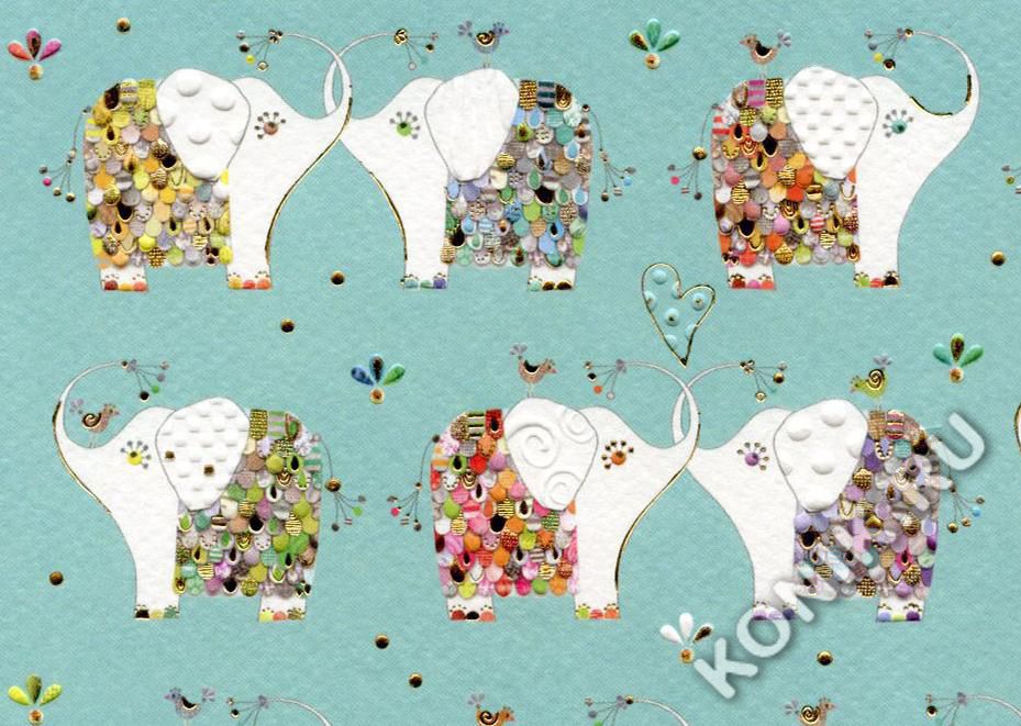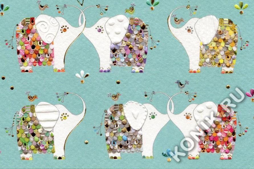 Открытка. Слоны в ряд