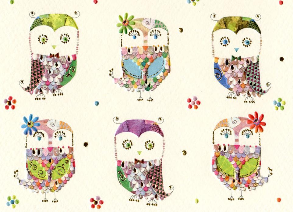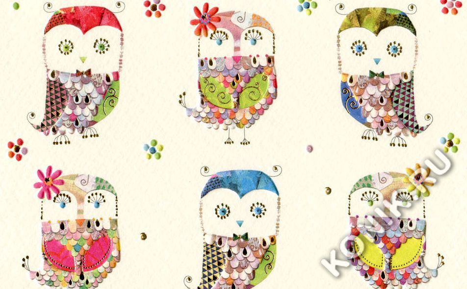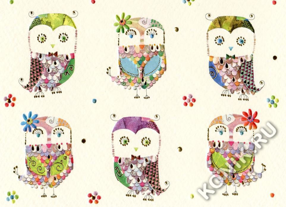 Открытка. Совы в рядах