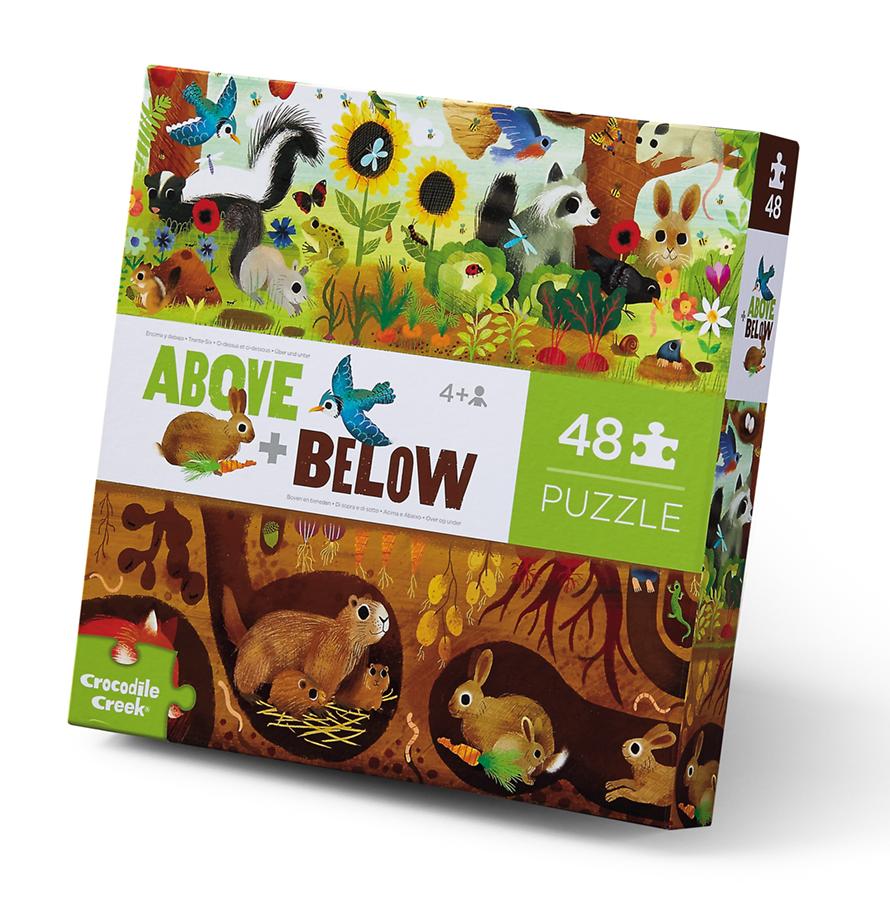 «Над и под» — серия познавательных пазлов от Crocodile Creek. В сюжетах головоломок представлен окружающий мир сразу с двух ракурсов: сверху и снизу! Соберите пазл вместе с вашим малышом, а потом изучите все детали и отличия «неба» и «земли».
