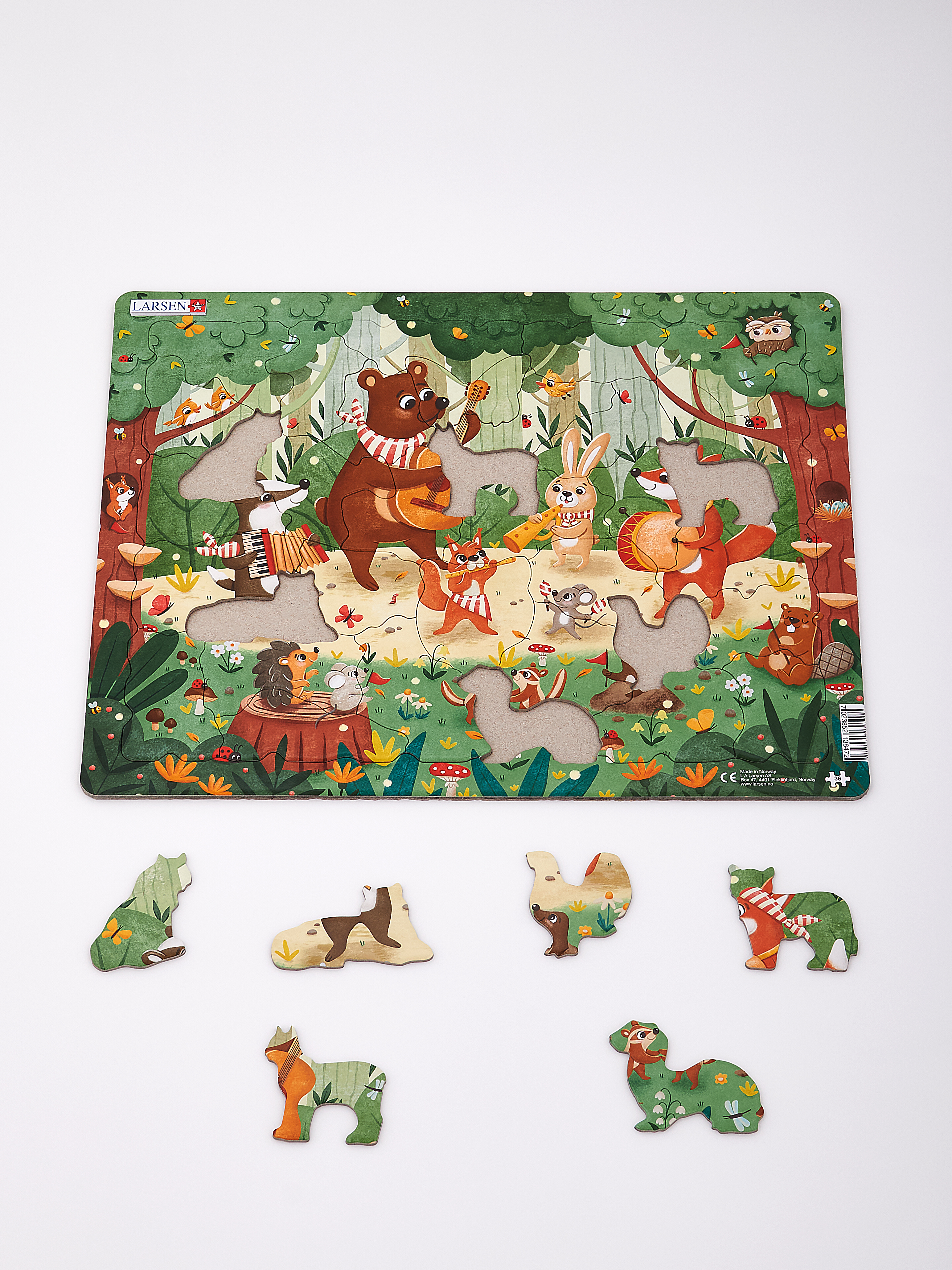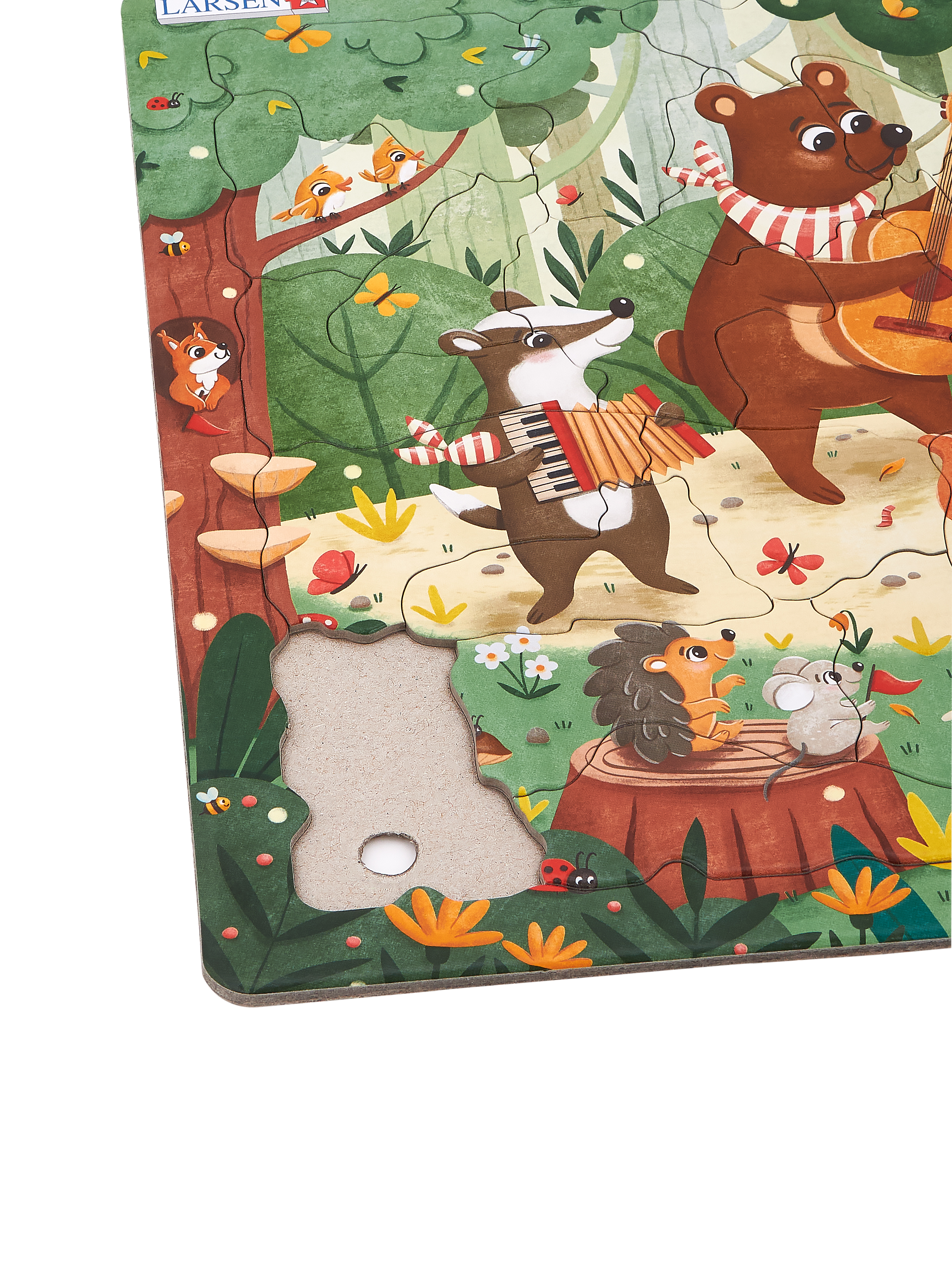 Необычный пазл от Larsen состоит из 36 элементов. Лесные обитатели решили устроить музыкальный концерт.
