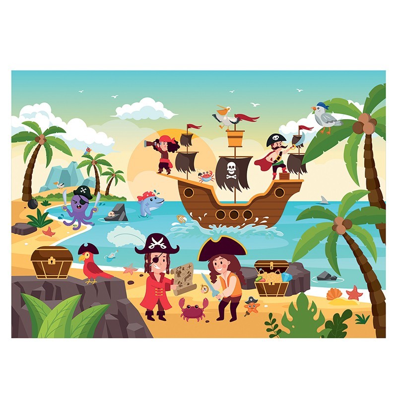 Пазл «Пираты» состоит из 36 элементов. На картинке изображены веселые пираты на фоне корабля.