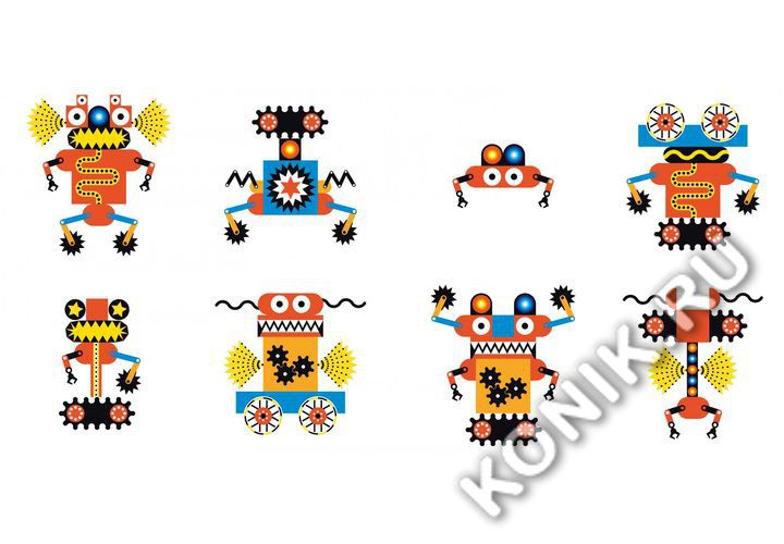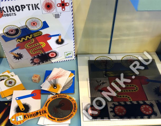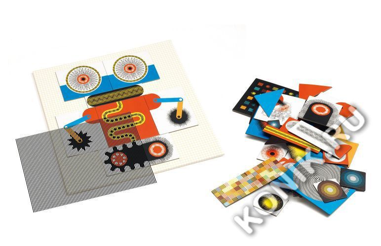 Веселая игра на воображение, строительство и анимацию! Дети проектируют и создают сумасшедших роботов, соединяя магнитные детали на доске — можно выбирать из тысяч комбинаций! Перемещая полосатый лист, они могут заставить роботов оживать и двигаться волшебным и неожиданным образом. В комплект входит буклет с инструкциями.