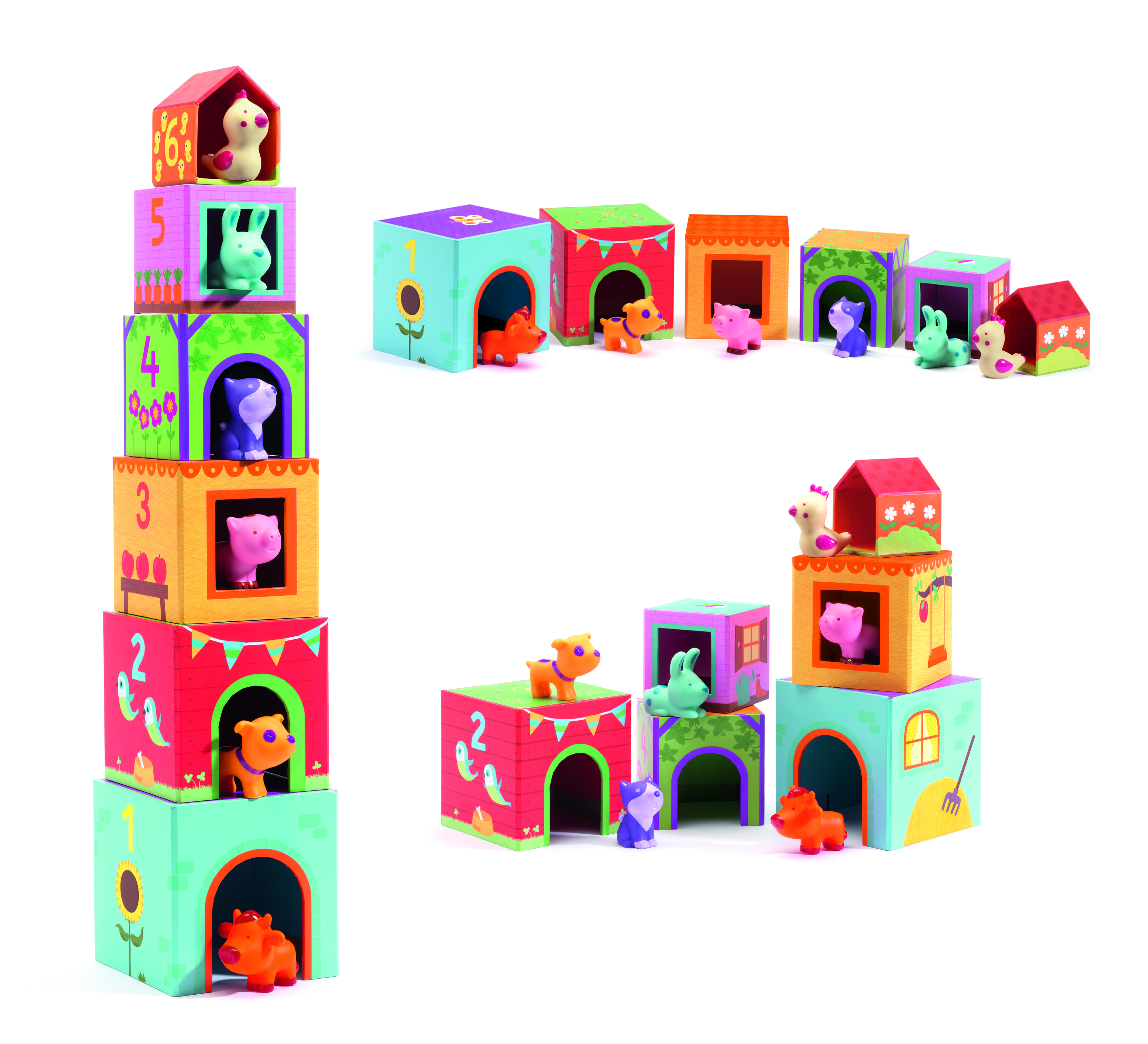 6 иллюстрированных блоков с 6 животными для игры и создания фермы детьми. Бесконечные возможности для игры: дети могут складывать картонные блоки, чтобы построить башню, или соединять их вместе. Они также могут разложить их и создать множество сцен фермы или просто играть с животными самостоятельно. Так много историй, которые можно придумать с этим полным набором.