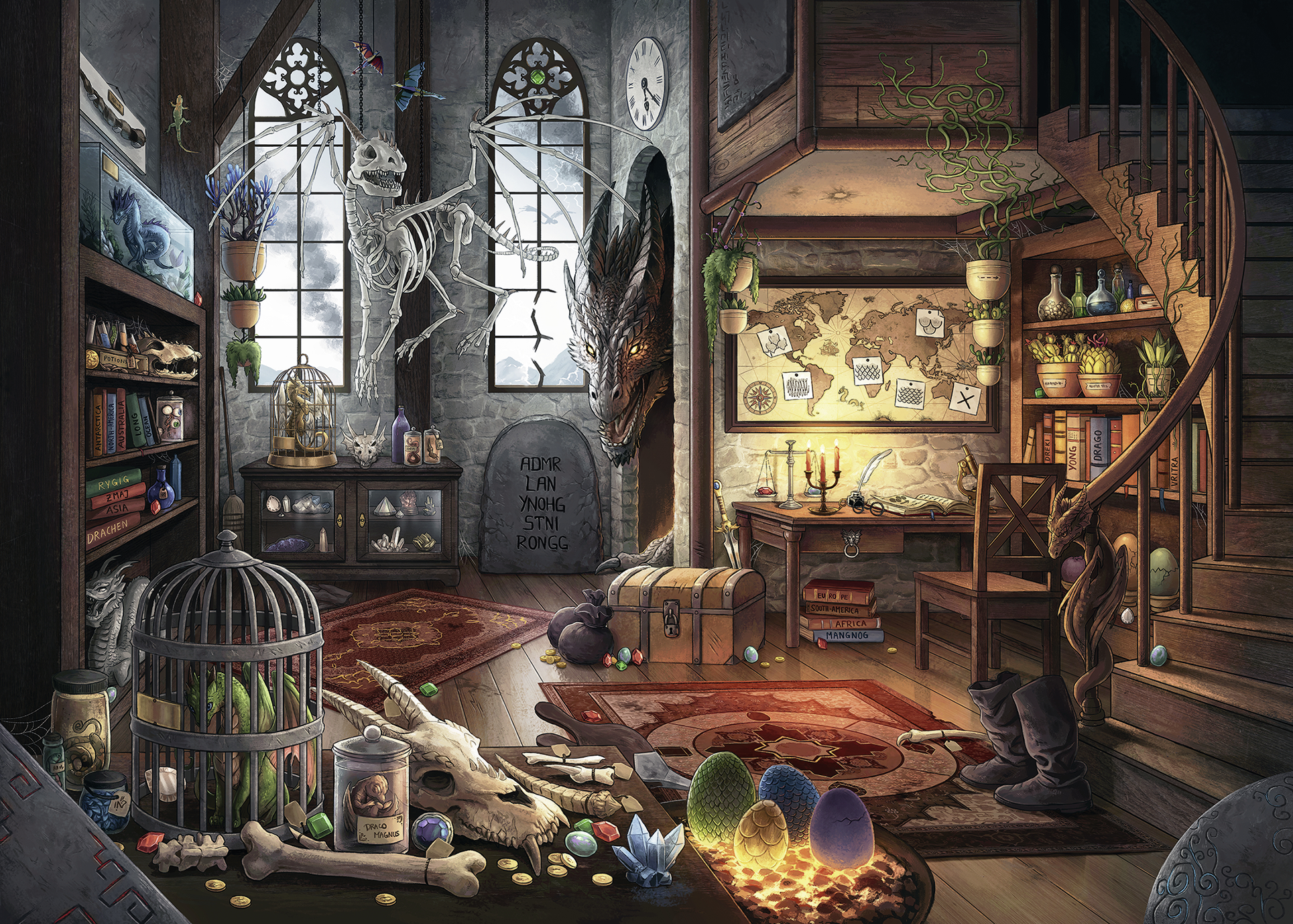 Пазл-квест Ravensburger «Лаборатория дракона» — это интригующая история, которая объединяет головоломку и квест-задание в стиле Escape Room. Решите все загадки и найдите зашифрованные коды на элементах пазла. Соберите их вместе — они укажут вам, где выход. Обратите внимание, что некоторые детали собранного пазла отличаются от картинки на коробке: это часть квеста.