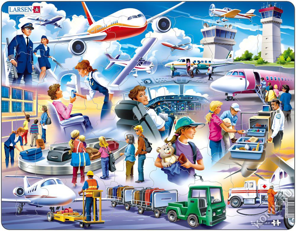 Эта наполненная авиацией головоломка представляет собой привлекательную и декоративную иллюстрацию аэропорта и авиационной отрасли. На головоломке изображены пассажиры, садящиеся в самолет, пилот, управляющий самолетом, молодая девушка и ее плюшевый мишка, перевозчик багажа, стюардесса, обслуживающая пассажиров, оборудование для досмотра, багаж на конвейерной ленте, семья, получающая свой багаж и проверяющая выходы на посадку, и персонал, заправляющий самолеты. Вы увидите большую взлетно-посадочную полосу, где самолеты приземляются и взлетают, пилота и стюардессу, выходящих из самолета, грузового агента в полной форме и симпатичный розовый самолет, забирающий пассажиров. В этой головоломке показаны восемь разных самолетов, с пропеллерами и без них. Лучше всего подходит для детей постарше, эта головоломка состоит из 42 деталей, некоторые из которых имеют форму чемодана, реактивного самолета, самолета, кепки и различных самолетов.