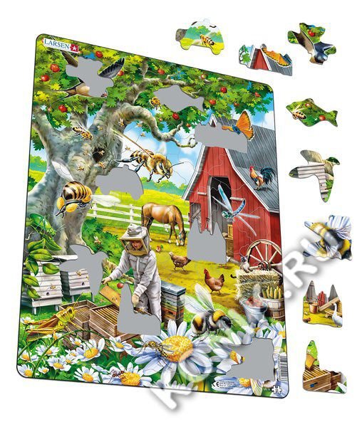 Пчелы являются неотъемлемой частью экосистемы нашей планеты, поскольку они выполняют важную работу по опылению растений. Вот как пчелы вносят вклад в производство пищи, которую мы едим каждый день. Пчеловодство является важным хобби или карьерой. Пчелы жужжат в воздухе вокруг хранительницы, когда она собирает мед из сот. Какое дерево дает пчелам тень в их домах? Одна пчела занята сбором пыльцы, пока другая возвращается домой, найдя ее довольно много. Многие другие насекомые, такие как кузнечики и муравьи, также наслаждаются прекрасной погодой. Кто ел яблоки на заднем плане? Некоторые из деталей имеют форму самолета, автомобиля, гудка, птицы и зданий.