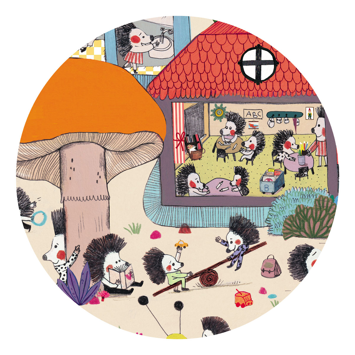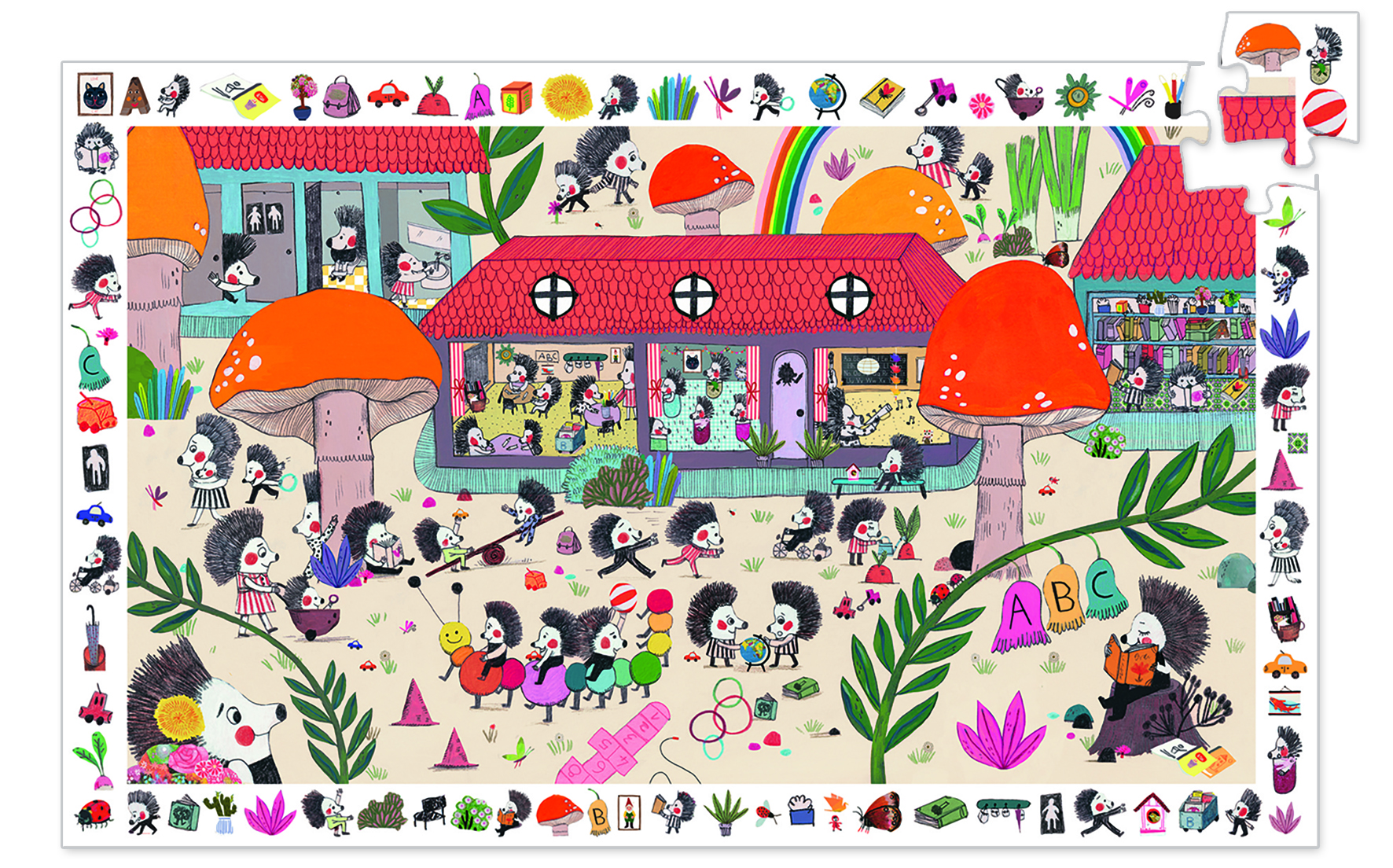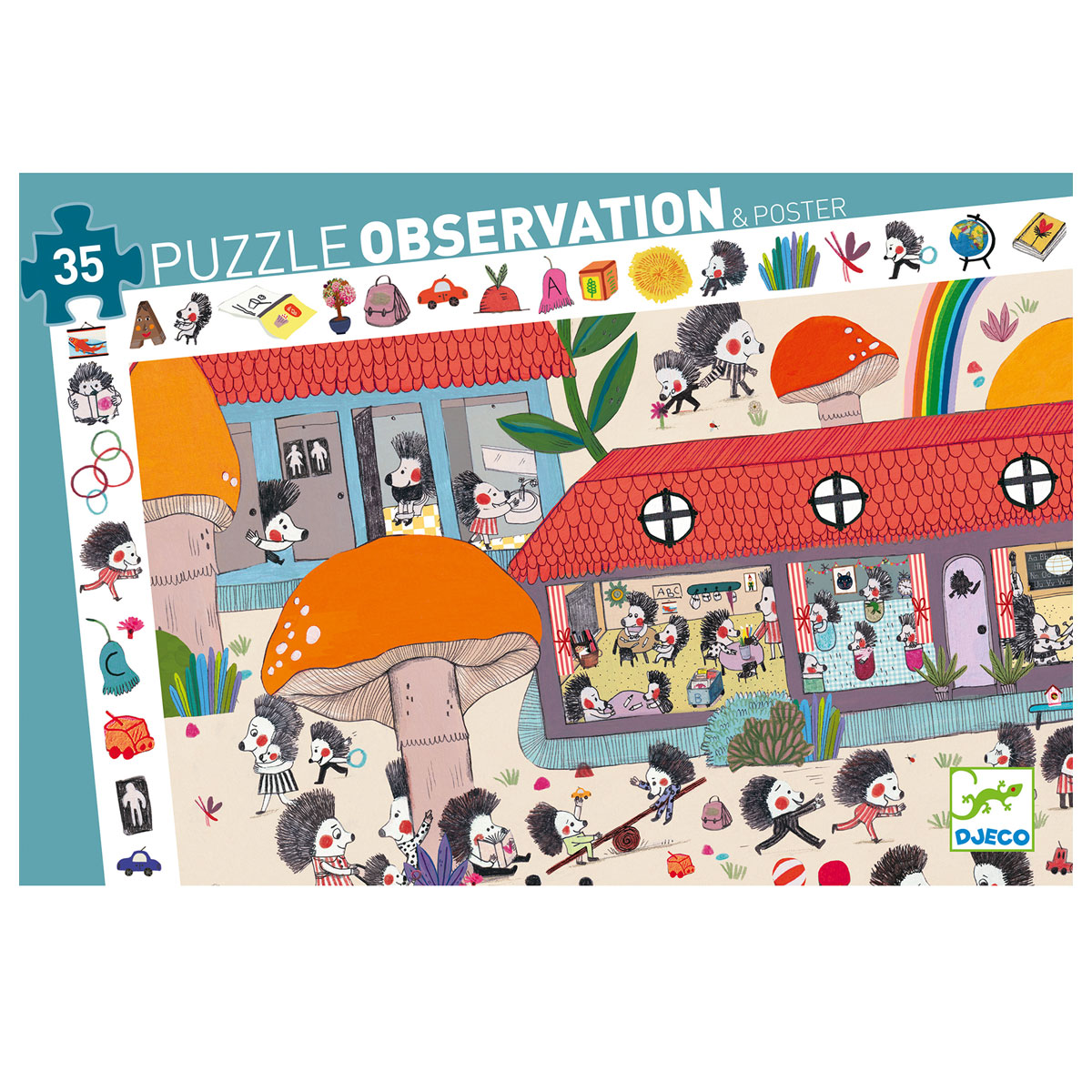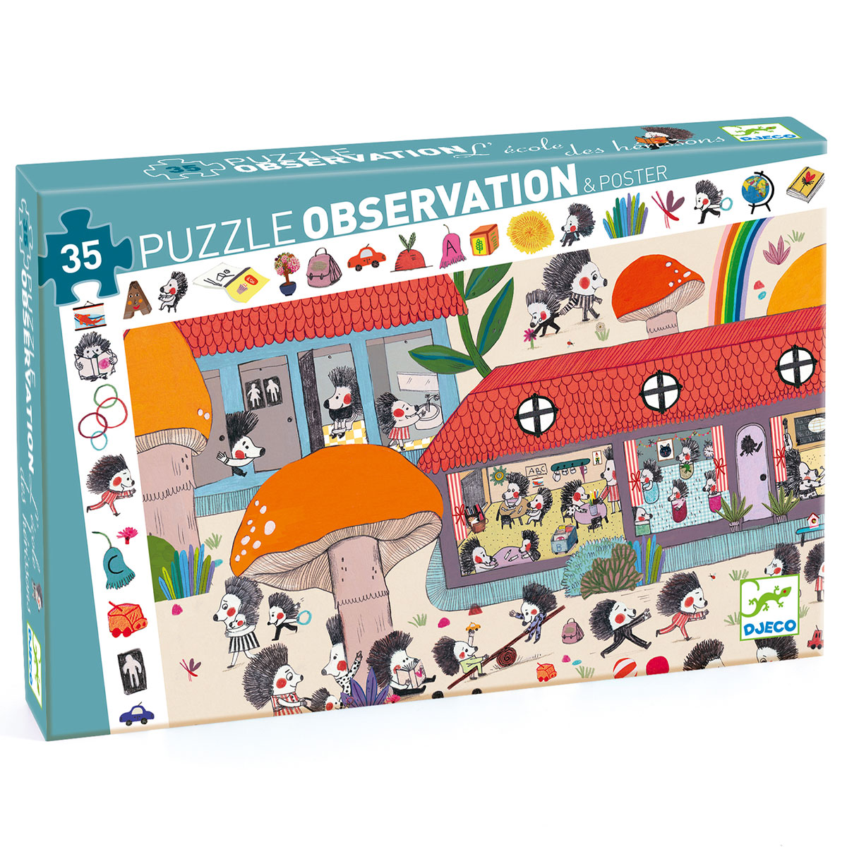 Детский пазл «Школа для ежей» от французского производителя Djeco (Джеко) — это небольшая оригинальная головоломка, которая познакомит вас с милыми ежиками, учащихся в школе для зверят.