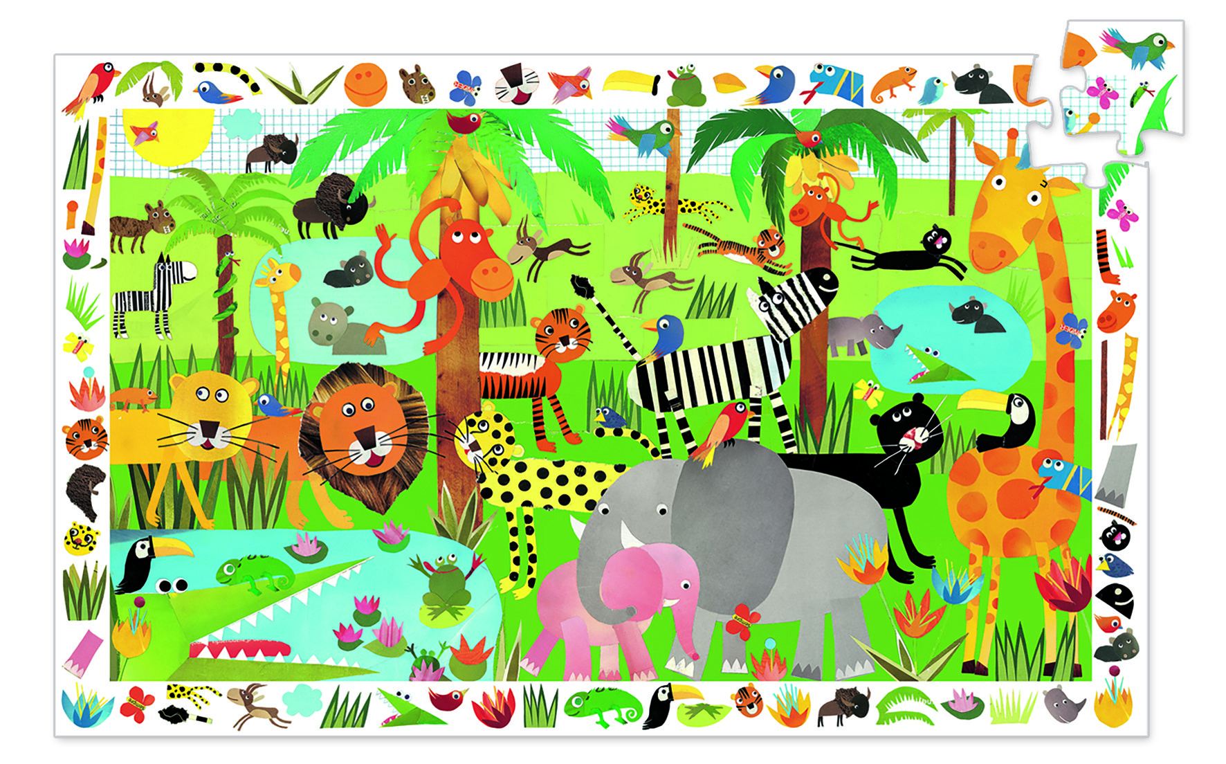 Детский пазл «Джунгли» от французского производителя Djeco (Джеко) - это оригинальная головоломка, погружающая вас в удивительный тропический мир. Вам предстоить собрать целую картину с изображением замечательных обитателей джунглей, а потом она станет отличным украшением детской комнаты и будет радовать вас еще долгое время.