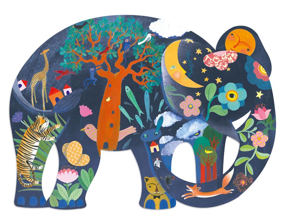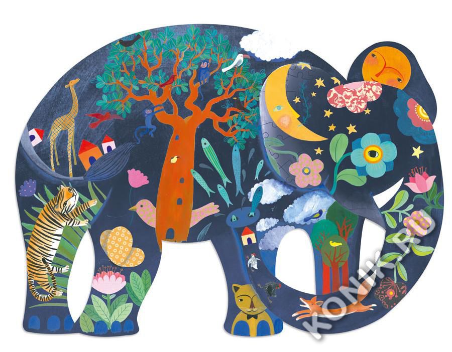 Пазл Djeco «Слон» – увлекательный и необычный фигурный пазл, который станет замечательной игрой не только для детей, но и для взрослых. Совершенно новый оригинальный формат, который приведет в восторг любого ребёнка. Просто потрясающий сказочный ночной пейзаж в фигурке загадочного слона. Собранная головоломка станет лучшим декором для детской комнаты, ведь малыш сделал его своими руками.