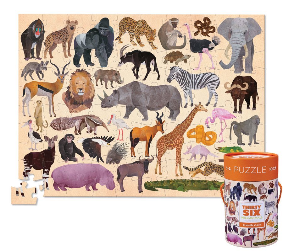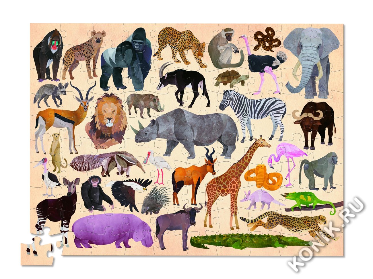 Узнайте всех диких животных вместе пазлом 36 Животных Дикие Животные от Crocodile Creek. На тематическом пазле изображены 36 разных диких животных. Дети могут узнать название каждого животного из листа, который включен в набор. В наборе 100 деталей.