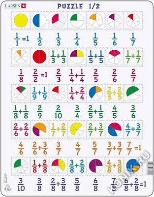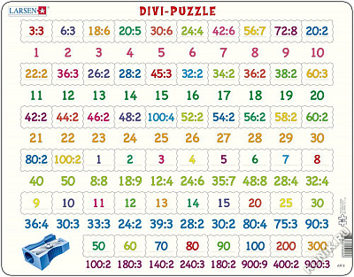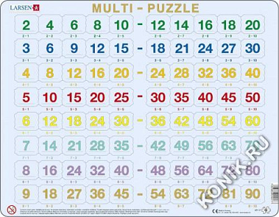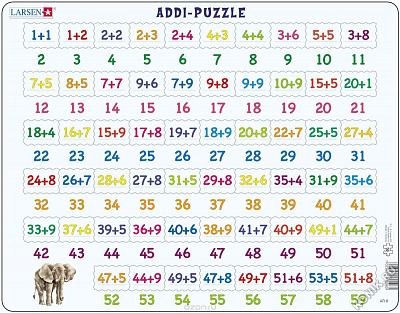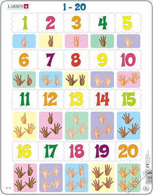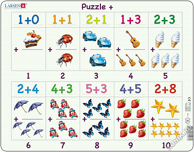 Ларсен делает пазлы на многочисленные сюжеты и тематики. В каталоге представлены детские образовательные пазлы из серии «учимся считать». Вы найдёте пазлы от 30 деталей, каждый имеет специальную рамку-подложку, которая делает процесс сборки удобнее для ребёнка. Также все детальки пазла имеют уникальную форму, контур которых нанесён на подложку, чтобы дети могли с комфортом собирать задание.