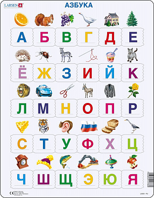 Ларсен делает пазлы на многочисленные сюжеты и тематики. В каталоге представлены детские образовательные пазлы из серии «учимся читать». Вы найдёте пазлы от 30 деталей, каждый имеет специальную рамку-подложку, которая делает процесс сборки удобнее для ребёнка. Также все детальки пазла имеют уникальную форму, контур которых нанесён на подложку, чтобы дети могли с комфортом собирать задание.