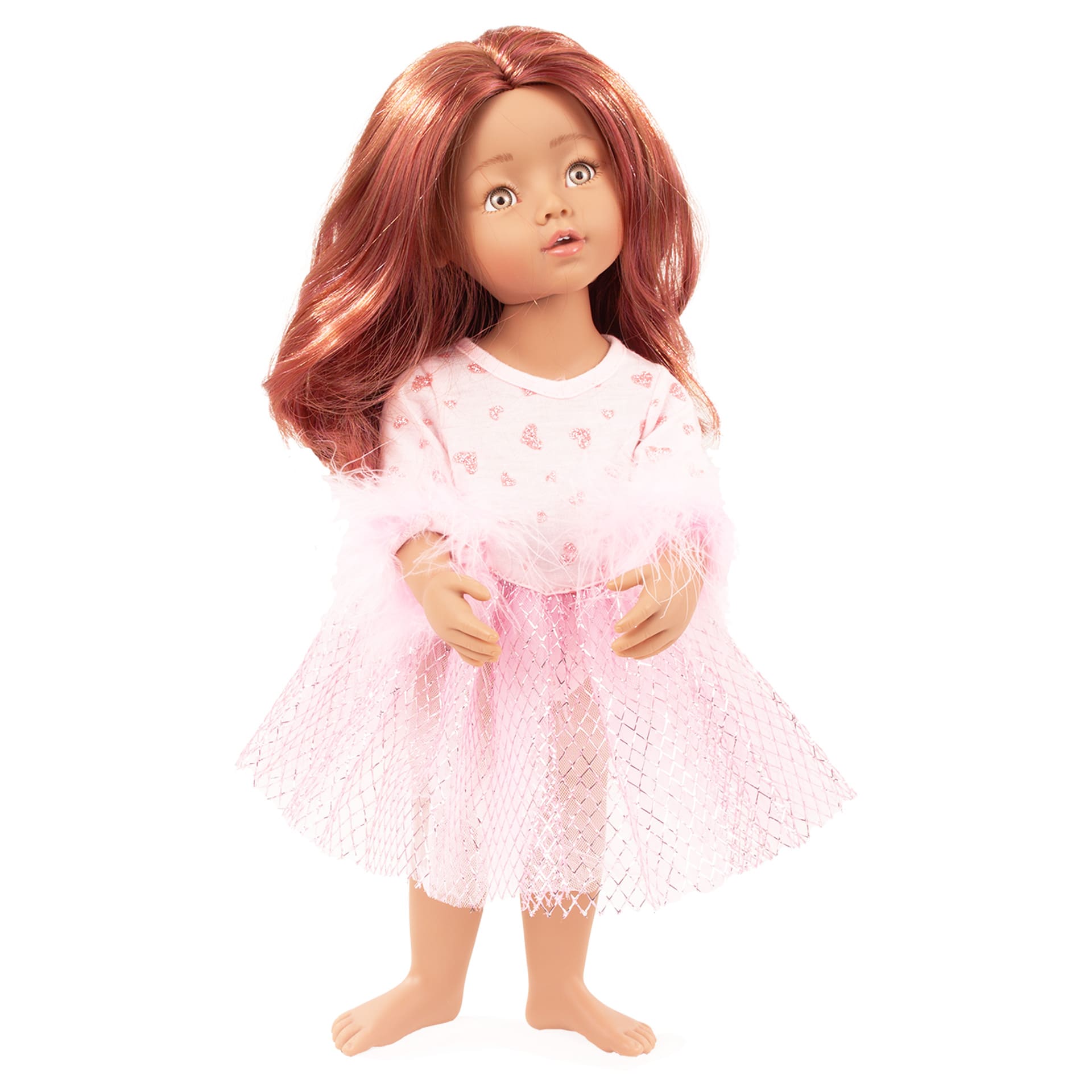 Модное нежно-розовое платье для кукол Gotz. Принт в сердечко и воздушная юбка сделает вашу куклу самой модной!
