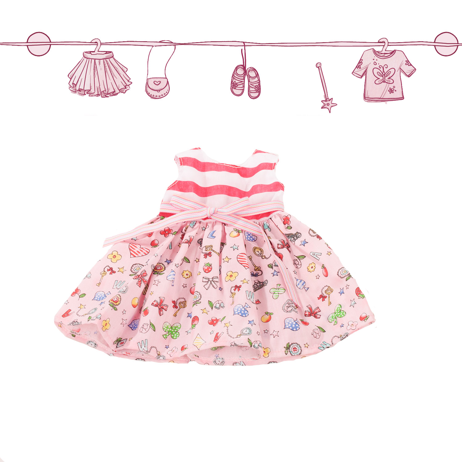 Чудесное платье для кукол Gotz с верхом в полоску и юбкой с милым принтом. Ремешок завязывается бантиком и выглядит очень мило! Такое платье отлично подойдет для теплых летних прогулок.