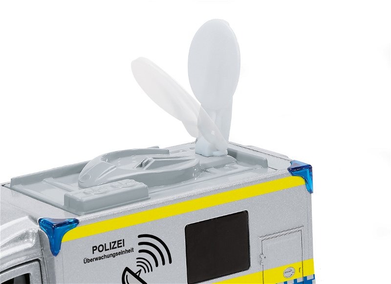 Чем сложнее полицейская операция, тем важнее надежная связь между оперативными службами. С помощью спутниковой связи обмен работает быстро и бесперебойно даже в кризисных или катастрофических ситуациях. Именно поэтому полицейский автомобиль Mercedes Benz оснащен соответствующим оборудованием, ведь на его крыше установлена вращающаяся спутниковая антенна, которую можно складывать во время движения. Открываются как двери с обеих сторон водительской кабины, так и две двери с правой стороны, а также сзади.