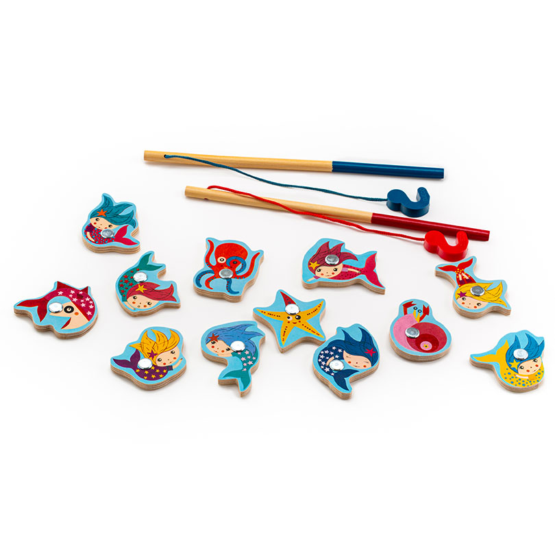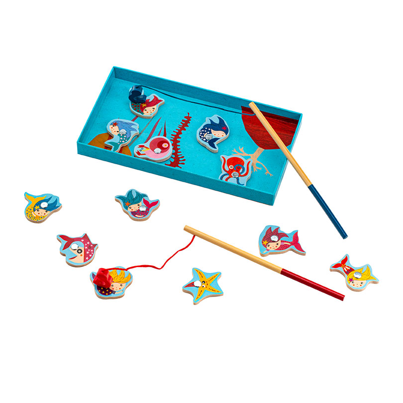 Магнитная игра Поймай русалочку от французского производителя Djeco (Джеко) - это интереснейшая развивающая игра, в которой малышу предстоит выловить забавных русалок или их маленьких друзей. В наборе можно найти 2 деревянные удочки с безопасным магнитным крючком и 12 деревянных магнитных фигурок. Магнитная игра Поймай русалочку от Djeco поможет не только развить ловкость, моторику рук ребёнка, внимательность и усидчивость, а также быстроту реакции и дух соперничества. Деревянные магниты экологически безопасны, приятны для детских ручек и способствуют развитию тактильных ощущений. Набор продается в красивой подарочной коробке. Французская компания Джеко уже более 60 лет производит развивающие игрушки и игры для детей, наборы для творчества, а также детали интерьера детской комнаты и детские аксессуары. Все товары Джеко отличаются высочайшим качеством, необычной идеей исполнения. Дизайн и иллюстрации к игрушкам Джеко разрабатываются совместно со всемирно известными художниками.