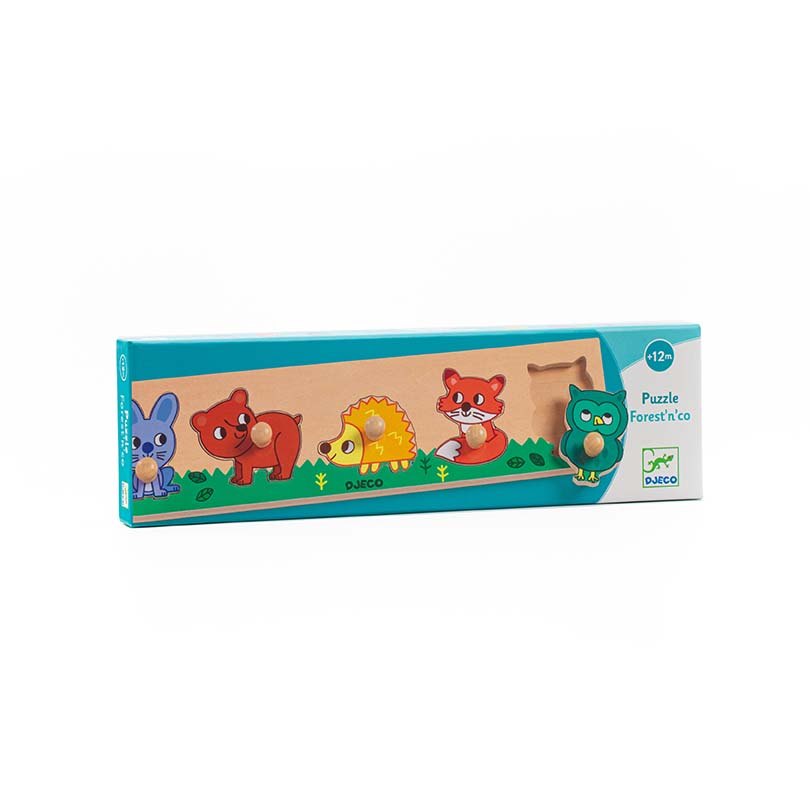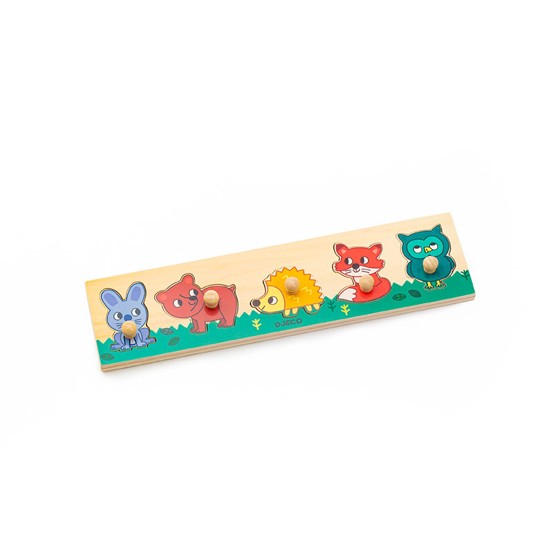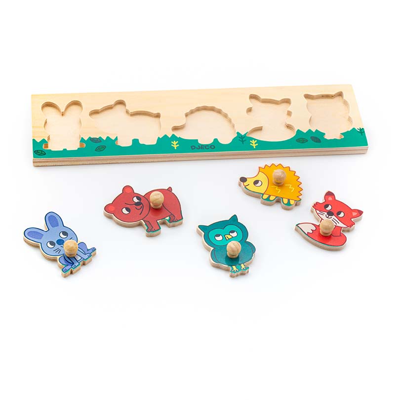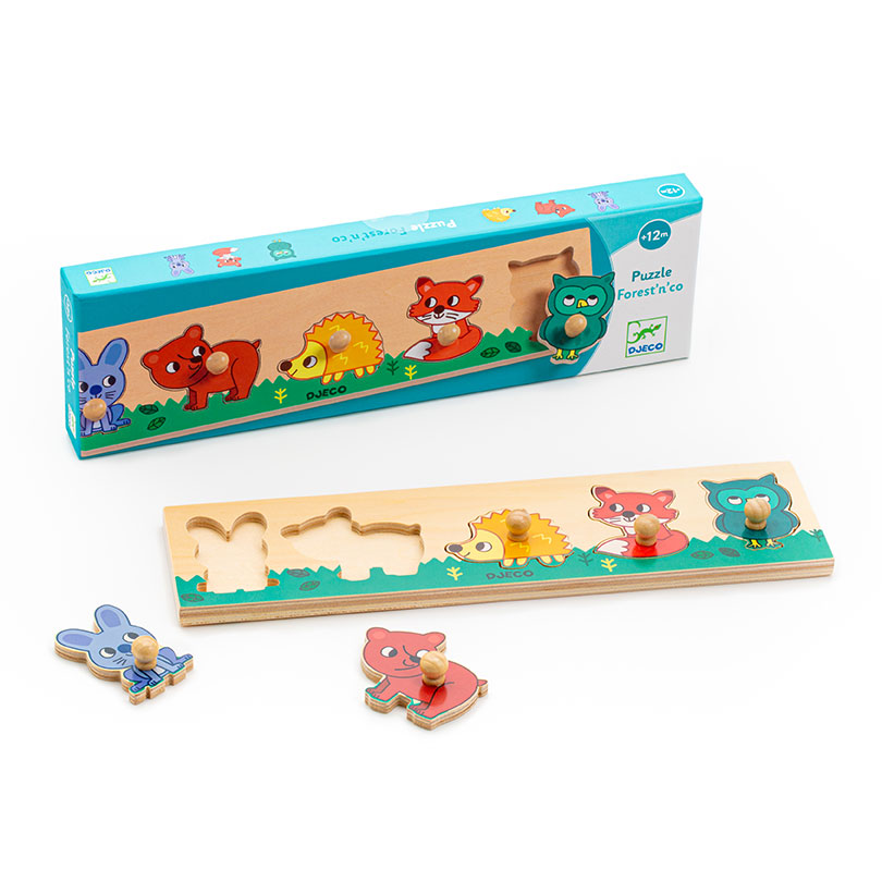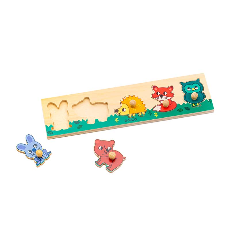 Развивающий пазл-вкладыш «Лес» от Djeco познакомит малыша с миром животных.