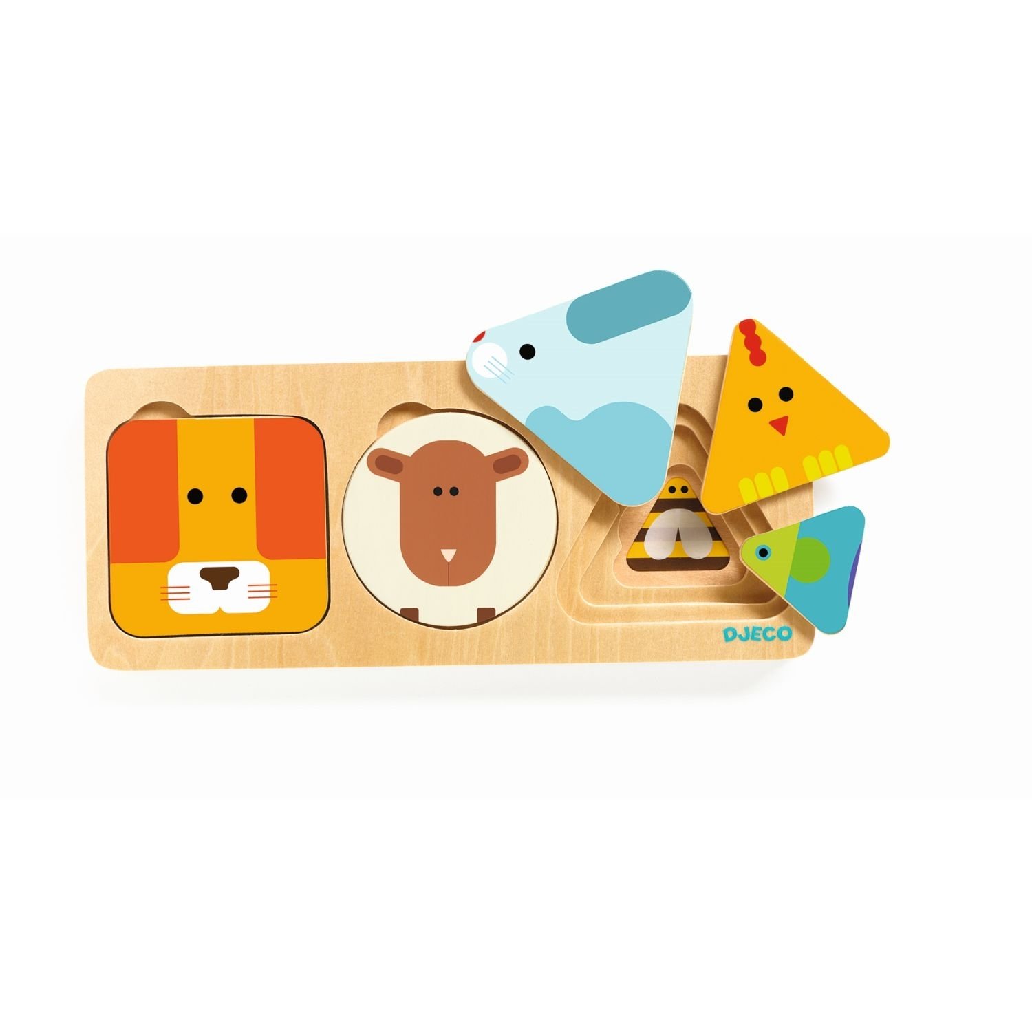 Деревянный пазл с 3 уровнями предназначен для самых маленьких детей (от 12 месяцев и старше), которые знакомятся с формами и размерами. Дети могут с удовольствием расставлять элементы в нужных местах в соответствии с их формой и размерами на 3 уровнях. На элементах изображены простые красочные животные.