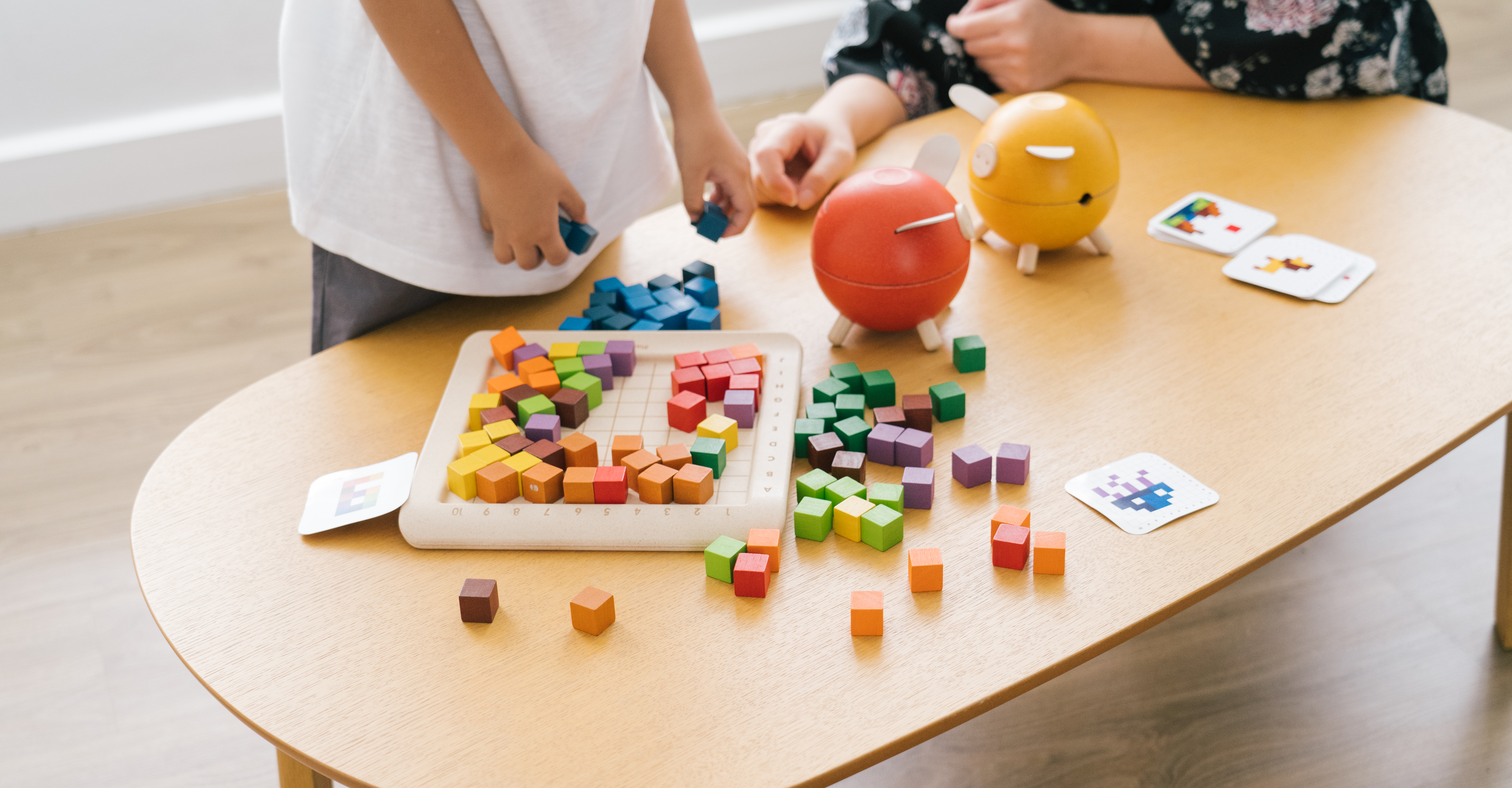 В наборе 100 блоков, из которых можно создавать различные конструкции, схемы и картинки. Также в комплект входит 20 карточек для игры, которые делают процесс обучения еще интереснее.