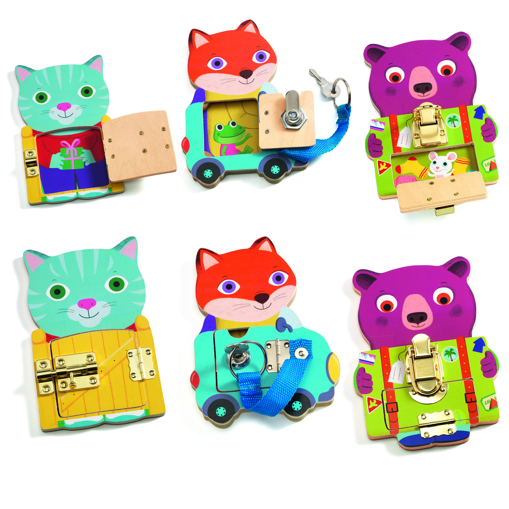 Развивающая игра «Замки Локту» от Djeco — это увлекательный набор для обучения малыша важным бытовым навыкам.