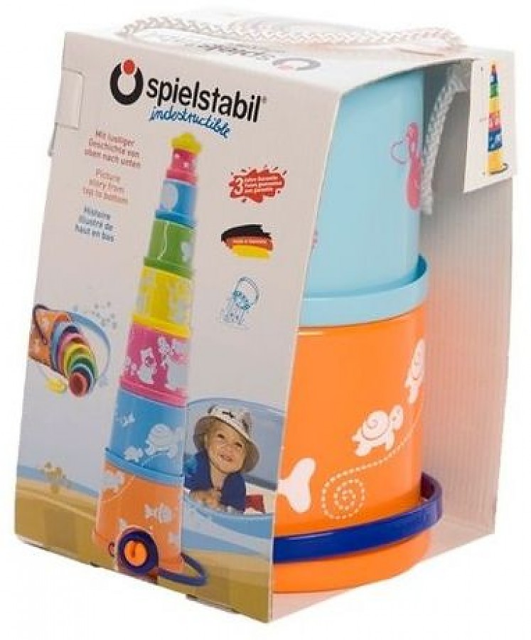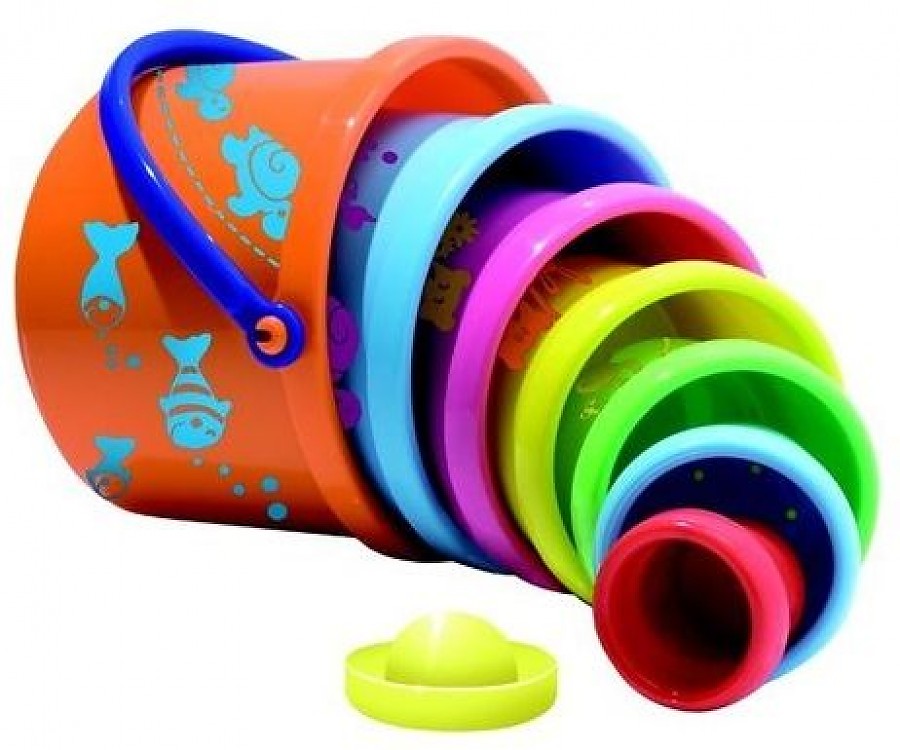 Пирамидка с формочками — это развивающая игрушка для малышей. Она состоит из восьми ярких, цветных ведерок. Каждая формочка пастельных цветов украшена своим рисунком, составив ведерки, малыш сможет «прочитать» веселую историю про забавных зверюшек.