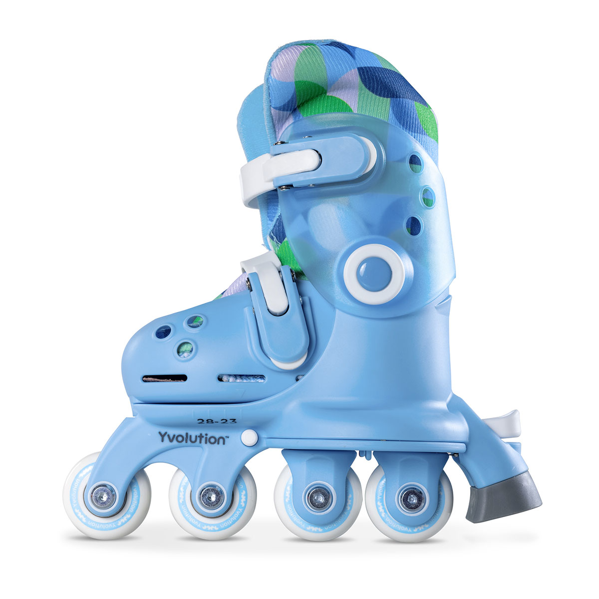 Ролики Yvolution Twista регулируются от 22 до 27 российского размера (длина стопы 14-17,5 см) без необходимости использования дополнительных инструментов. Благодаря возможности регулировки размеров, вы можете быть уверены, что ролики подойдут вашему ребенку на долгие годы!
