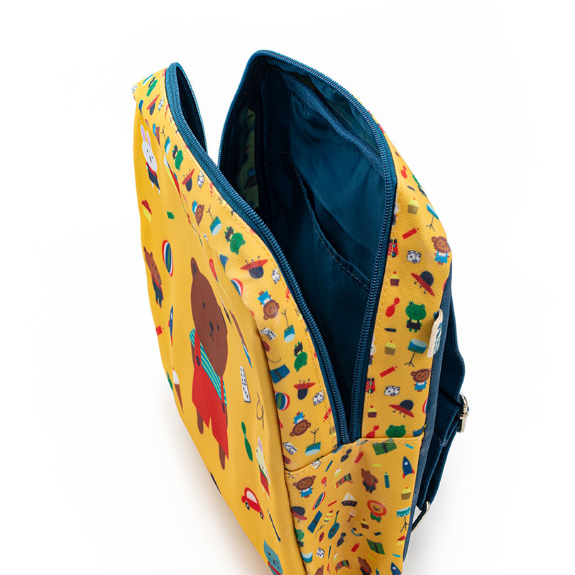 Первая сумка для самых маленьких, на которой с нежностью изображен маленький бурый медвежонок и его спутники. Ее небольшой размер подходит для маленьких детей и идеально подходит для переноски их вещей в школу или на прогулку.