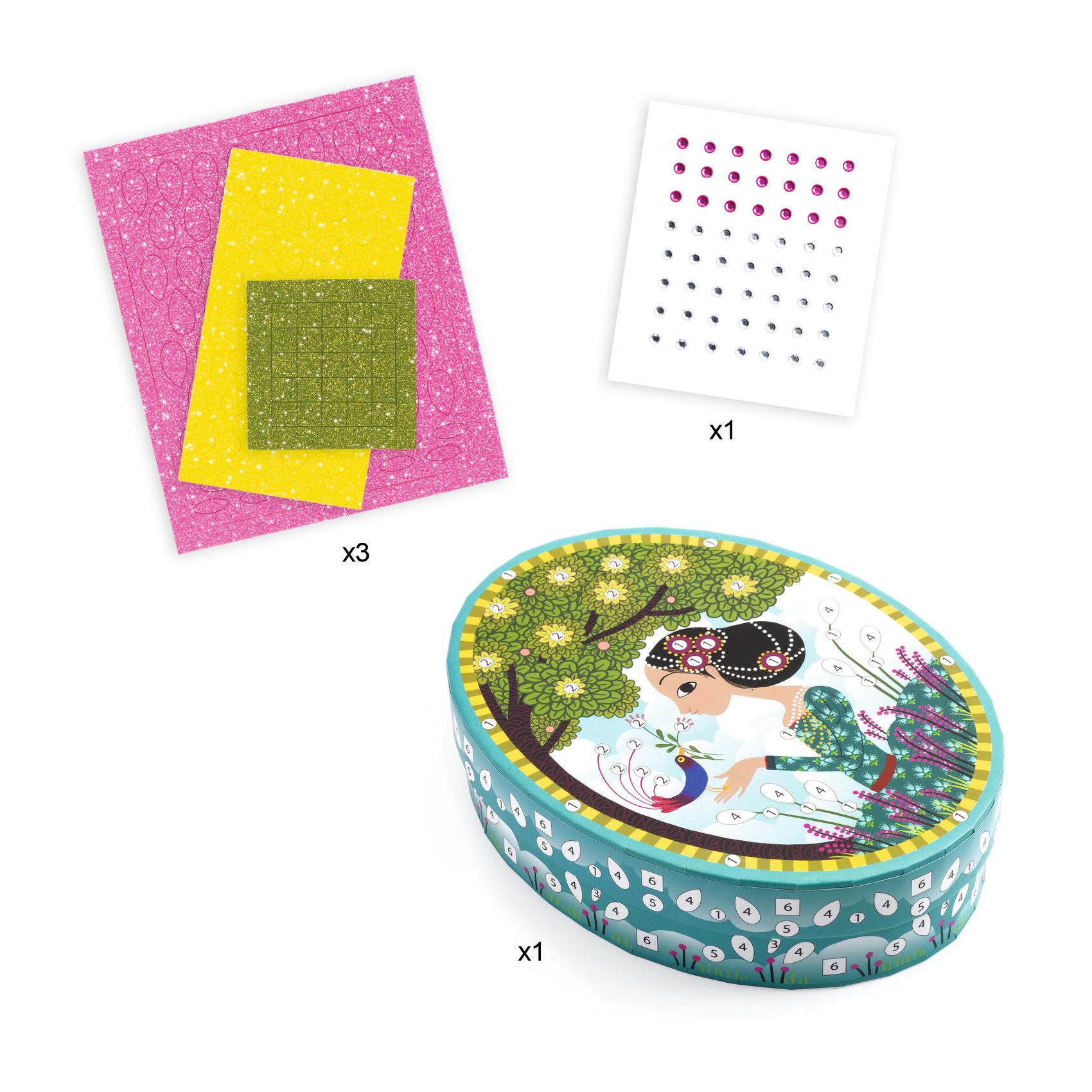 У каждого есть свои маленькие секреты! Украсьте секретную шкатулку блестящей мозаикой и разноцветными камнями при помощи этого набора для творчества. На шкатулке указаны цифры в соответствии с которыми на нее можно нанести декоративные элементы на клейкой основе, которые входят в набор. А потом внутри можно прятать секреты.