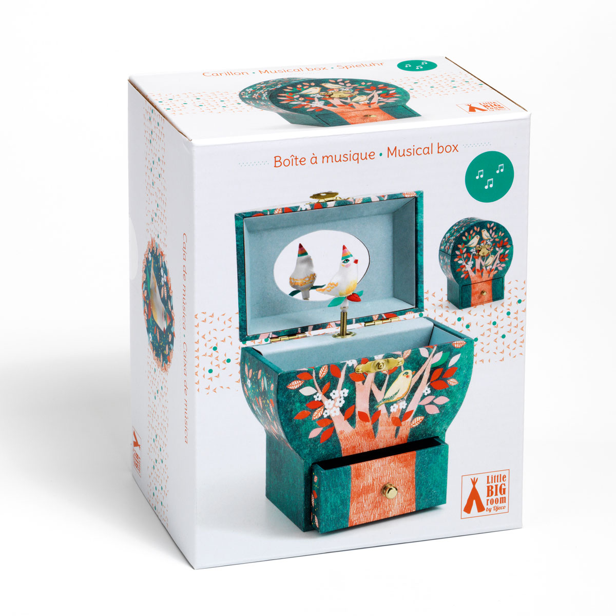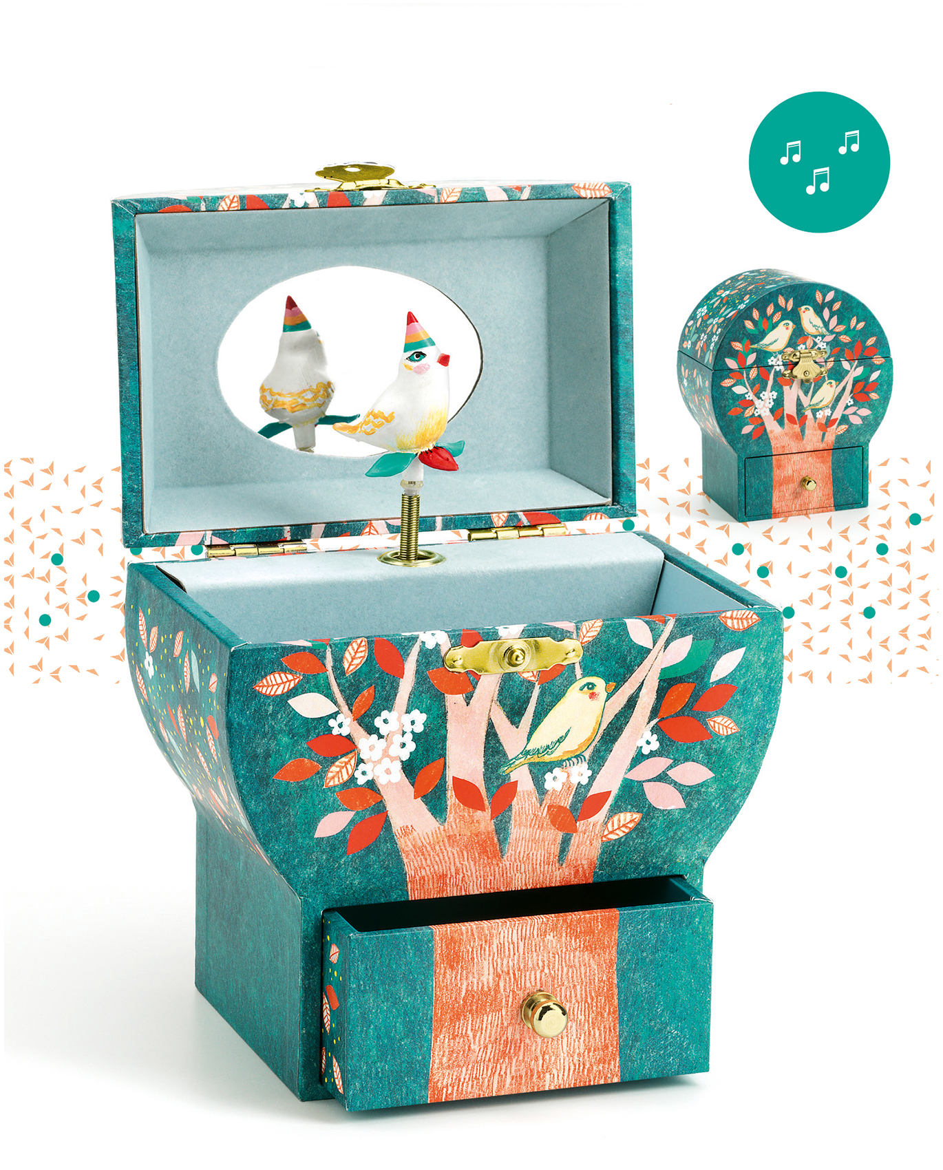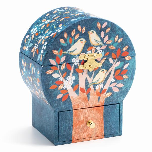 Поэтическое дерево — это музыкальная шкатулка красивой формы с ящиком для хранения драгоценностей и секретных вещей. Поверните ключ, откройте шкатулку и наблюдайте, как она оживает! Красивая, изящно вырезанная фигурка вращается, отражаясь в фигурном зеркале, под мелодию «Санта Лючия».