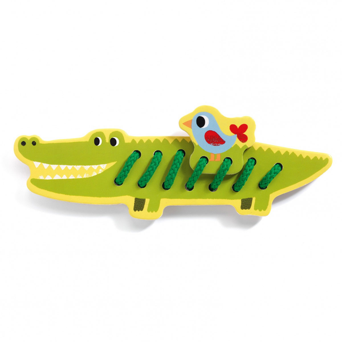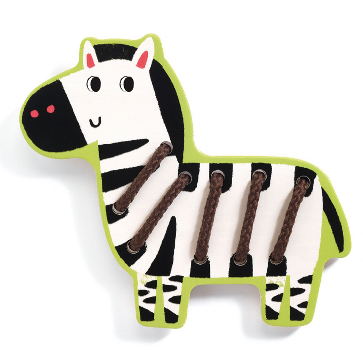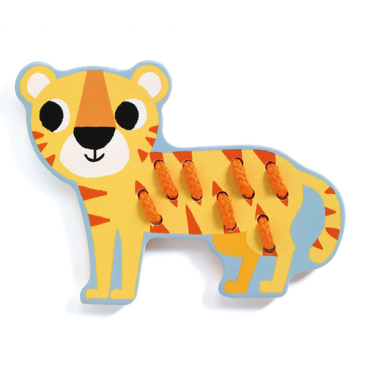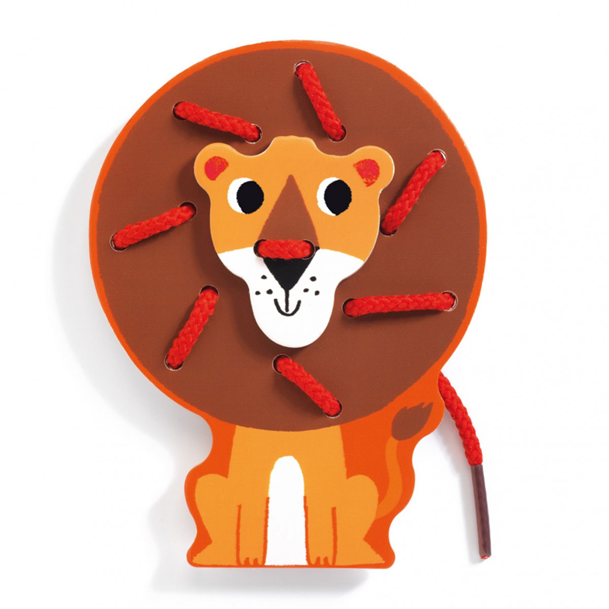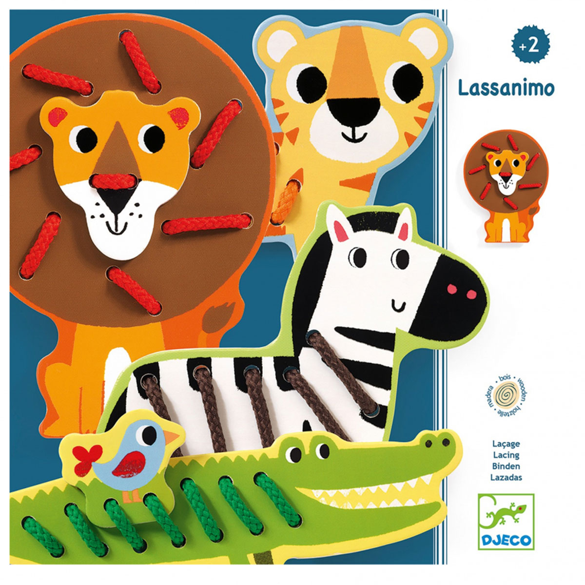 «Дикие животные» от Djeco — веселая развивающая игра-шнуровка для самых маленьких. В наборе четыре фигурки животных — зебра, тигр, лев и крокодил. Малышу предстоит украсить каждое из животных определенными элементами — полосками, пятнышками, гривой и чешуей с помощью разноцветных шнурков.