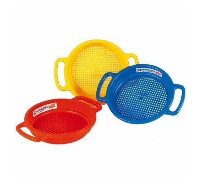 Сито для песка SPIELSTABIL — это незаменимый инструмент для игр в песочнице. С его помощью ребёнок сможет просеивать песок, отделяя камешки и другие предметы.