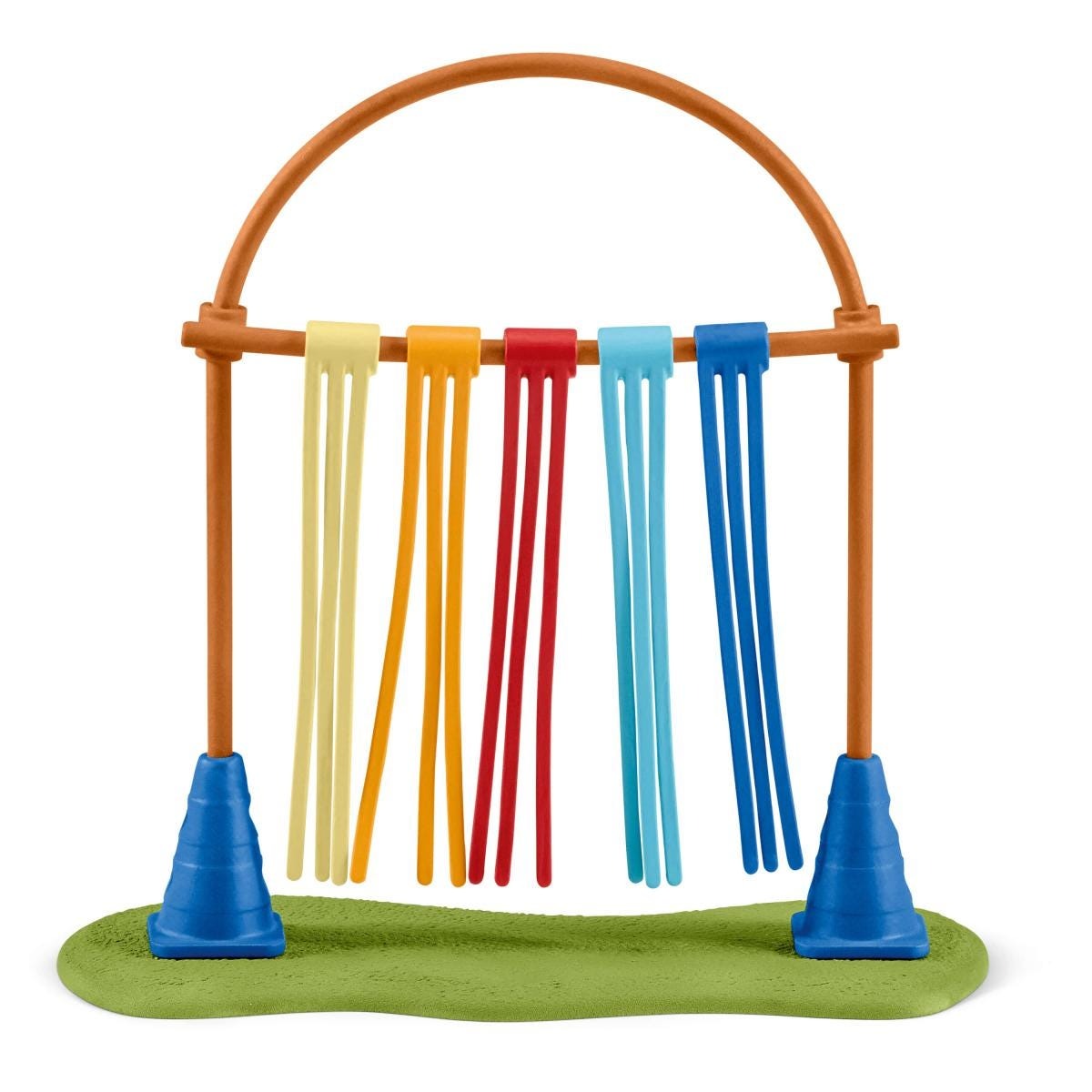 В набор входит: классический пони, шетландский пони, фигурка девочки, шлем для верховой езды, уздечка, поводок, въездные ворота, 8 загонов, качели, 4 конуса, 4 препятствия в виде стволов деревьев, 2 шеста, 2 воздушных шара, опорная плита, арка, 4 вымпела, перекладина, 5 развевающихся занавесок, 1 лист с наклейками