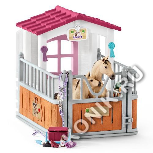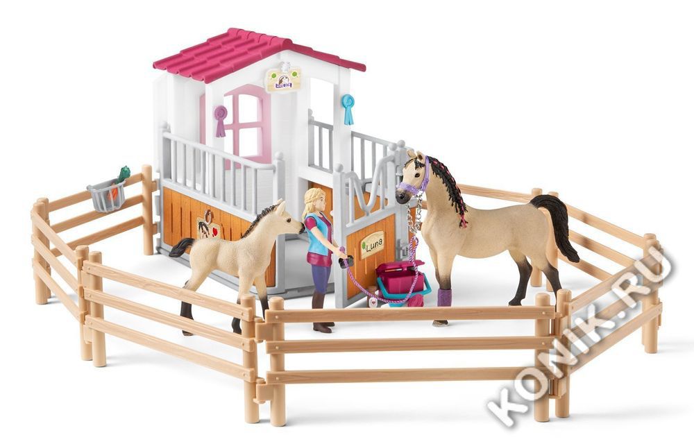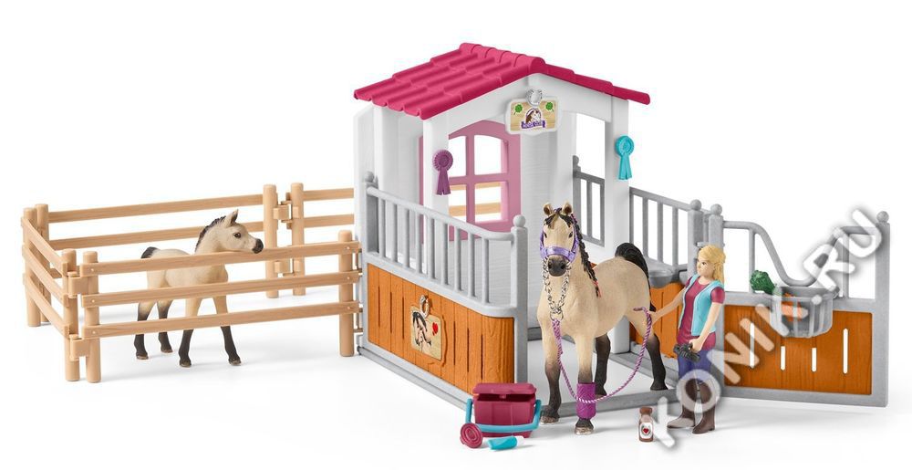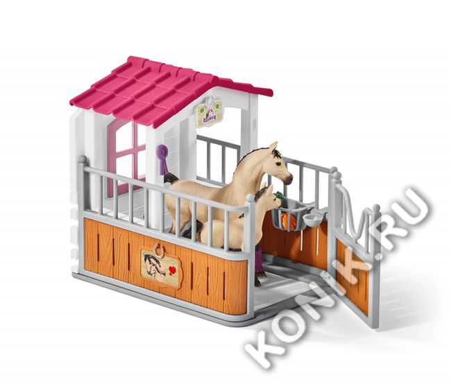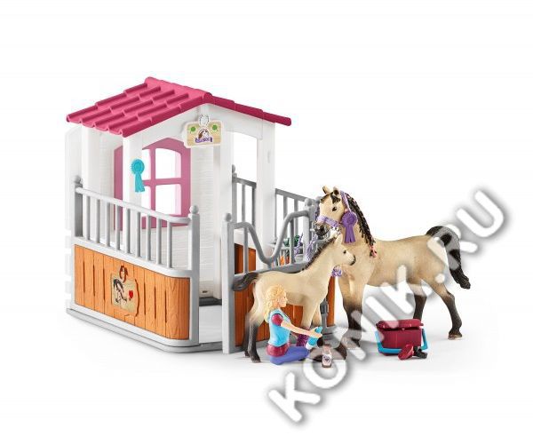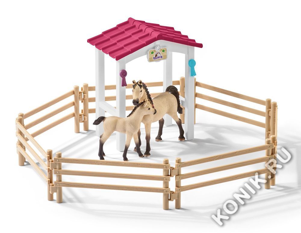 Стойло с арабской лошадью и жеребенком, конюхом