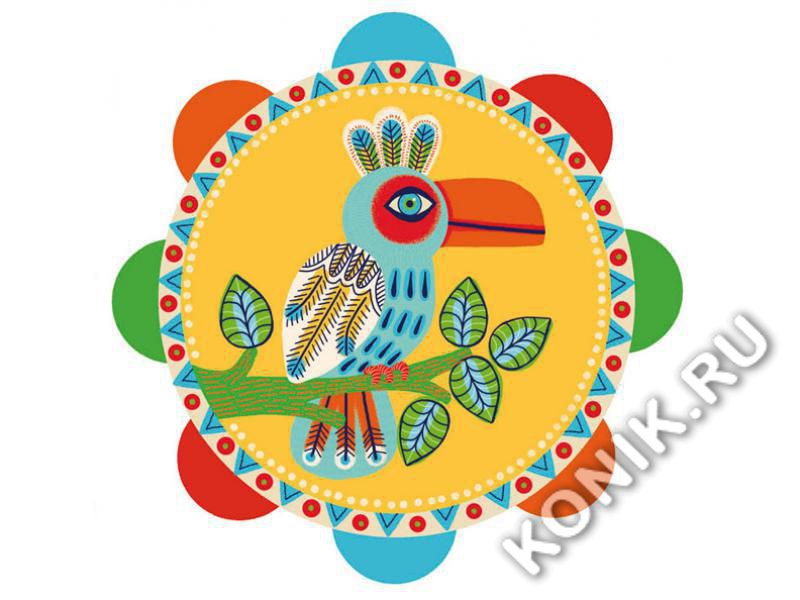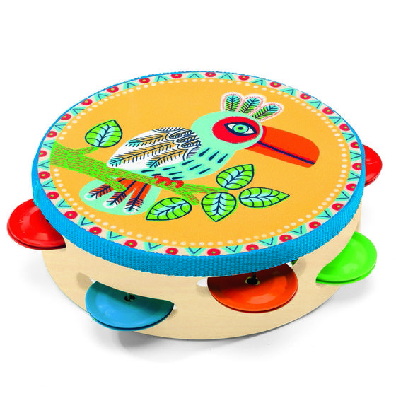 Чудесный бубен из дерева и металла с изображением забавного тукана, сидящего на ветке. Дети бьют в бубен ладонью, чтобы тарелки зазвенели. Идеальный подарок для маленьких музыкантов в возрасте от 2 лет.